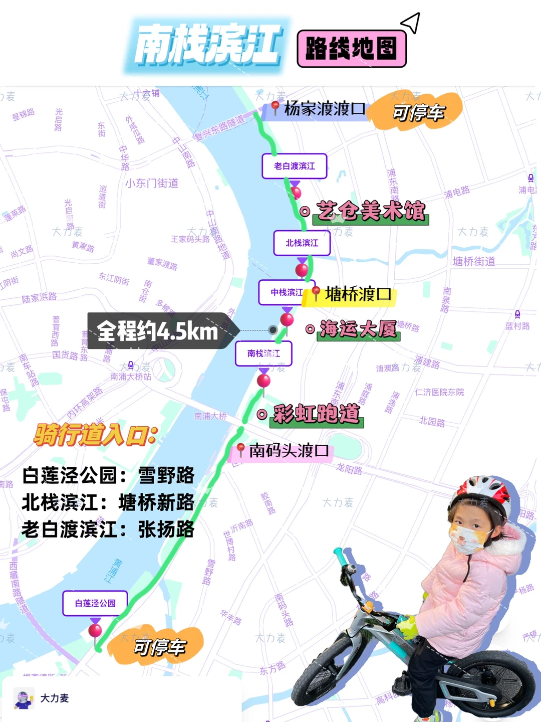 🚴♀️路线:白莲泾公园-南栈滨江-中栈滨江-北栈滨江-老白渡滨江-杨家渡渡口