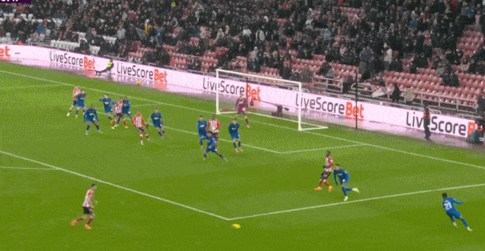 下半场刚刚开始,伯特兰-特拉奥雷就接到扎卡的助攻帮助桑德兰扳平比分: