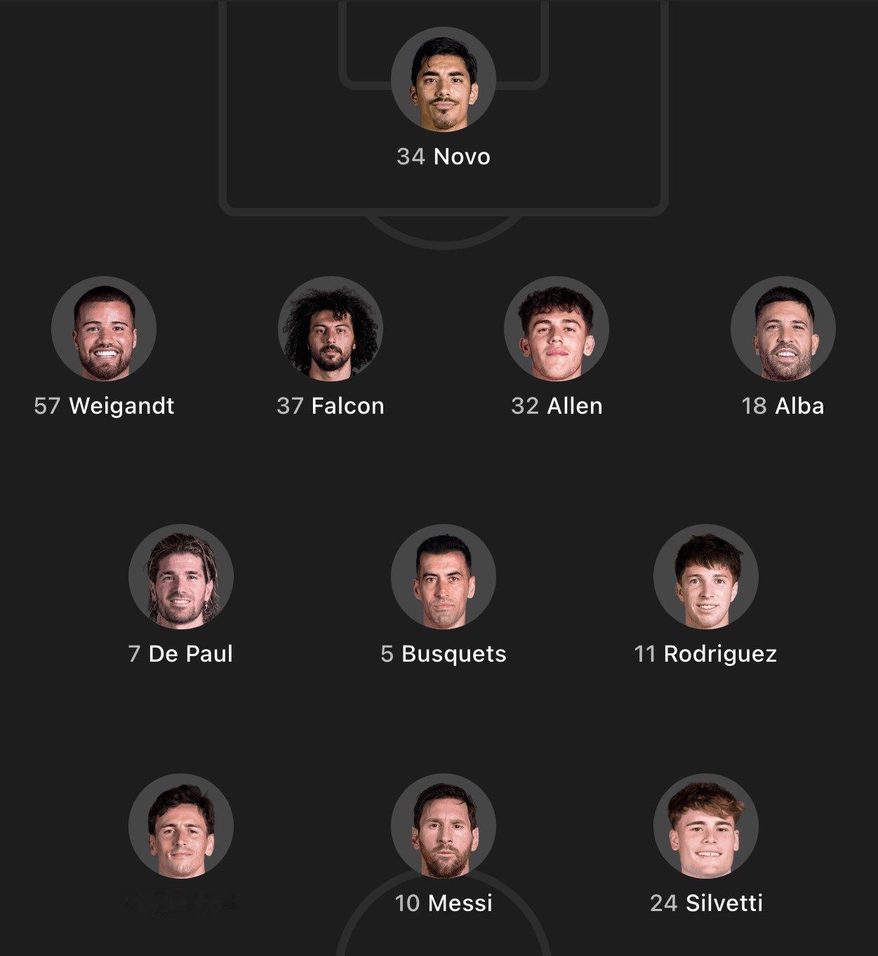 🔥首发阵容:迈阿密国际vs纽约城mls季后赛 东区决赛本场比赛迈阿密国际的首发与上一场相同,苏亚雷斯继续替补:34-诺沃、57-韦甘特、37-法尔肯、5-布斯克茨、32-阿伦、18-阿尔巴、24-西尔维蒂、7-德保罗、11-B·罗德里格斯、10-梅西、21-阿连德梅西迈阿密国际超话
