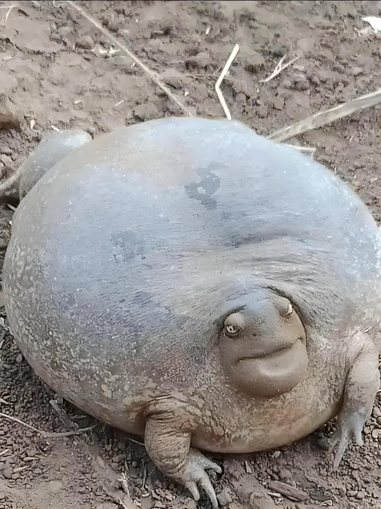 泥地里扒拉出个“漏气气球”,圆得能当球踢,嘴还笑出褶子——这到底是龟成精还是泥巴长了腿? 凑近一看更离谱:灰不溜秋裹满泥,软乎乎的壳把自己撑成了球,褶子里卡着土渣,天生上扬的嘴却像偷乐似的咧着。这货其实是印度小头鳖幼体,藏泥里伏击小鱼,晒太阳就把自己充成“土味玩偶”,丑得没边儿但越看越想戳戳它圆肚子! 你们见过这么会“装憨”的小龟吗?要是在泥地撞见,你敢不敢上手rua它一下?