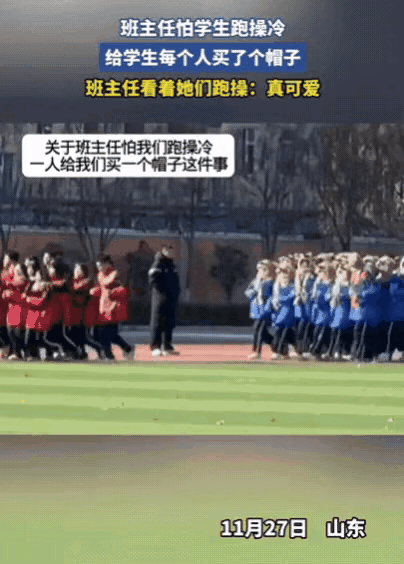 这老师火了!山东一班主任怕学生跑操冷,竟然给每个学生都买了个帽子,全部同一款式,