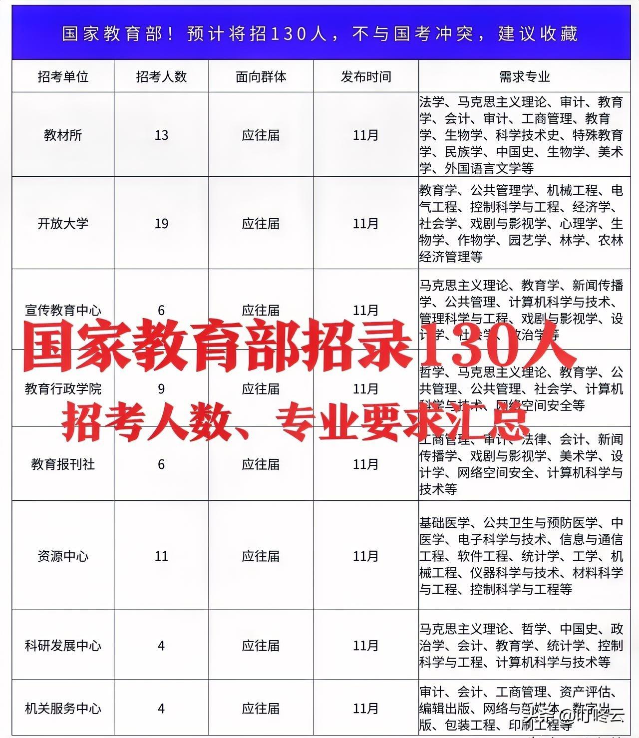 国家教育部26年预计招录130人!招录单位人数和需求专业汇总合集!开放大学、宣传教育中心、教育行政学院、资源中心、科研发展中心等等好单位,等你来报考!文科生的春天来了,对文史类专业招聘非常多!欢迎关注@叮咚云 招聘要求汇总揭秘,了解详细情况![点亮平安灯][点亮平安灯][来看我][来看我][礼物][礼物] 免责声明:图片来自网络,仅供参考! 哪些专业毕业后容易进国企?国家招聘 国考岗位限制 国家公开招聘 国家招聘平台 国考招生 国家人才招聘