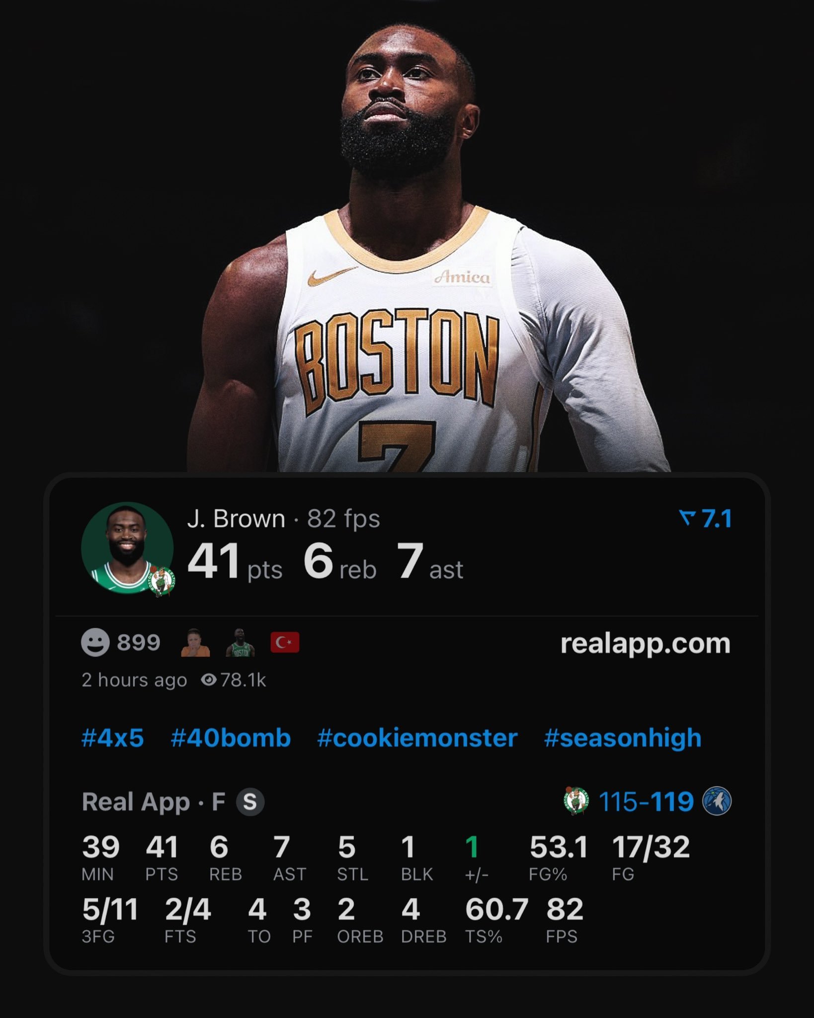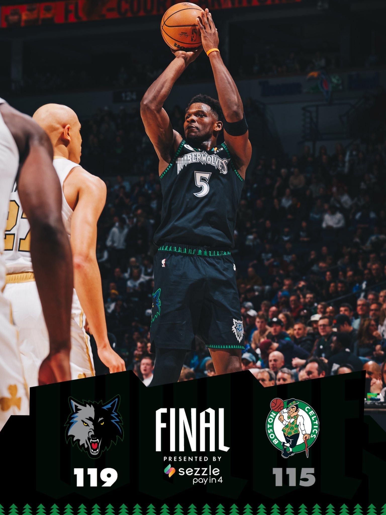 爱德华兹连续第4场30+,森林狼终于赢球,凯尔特人也是他们本赛季击败的第一个胜率50%+的对手。杰伦·布朗空砍41+7+6,葡羊19+18。NBA凯尔特人vs森林狼