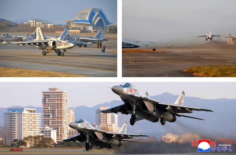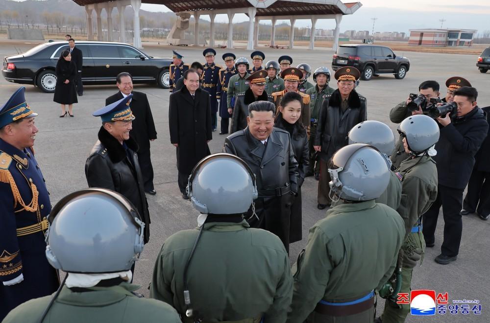 慈姐陪同慈父观看了朝鲜空军精彩的表演,并亲切接见了女飞行员。