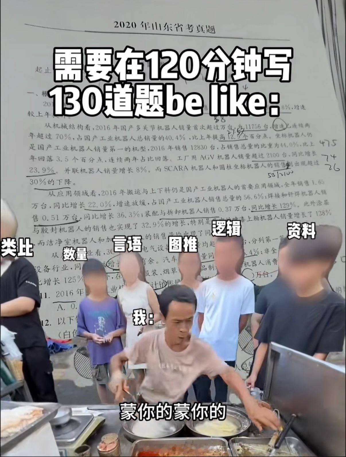 行测120分钟130题其实不是120分钟做130道题哈,是115分钟左右做,因为你还要涂卡()最后常识和数量发现袋子里里没有鸡排了