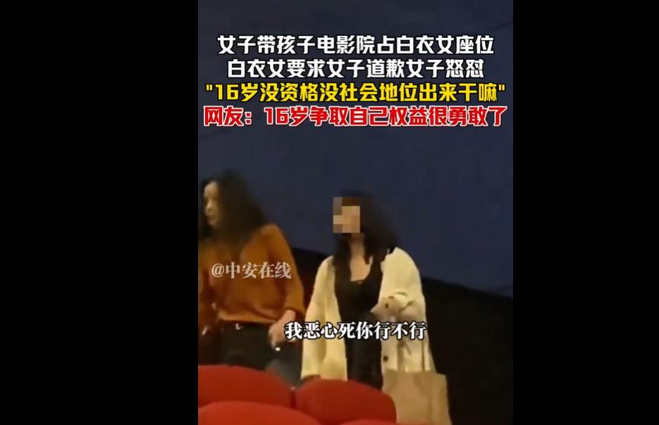 一女子带孩子擅自占用 16 岁女孩的购票座位,被要求让座时拒绝道歉,还贬低对方 “16 岁没资格维权”。 女孩坚持对号入座原则,散场后才理性理论,获网友广泛声援。 该事件凸显部分人将 “带孩子” 当特权,违反《民法典》相关规定,也反映公共空间 “我弱我有理” 的不良逻辑。 这女子真是把 “占座” 玩成了 “大型双标现场”! 自己霸着别人的座位不撒手,还拿 “带孩子” 当道德筹码,贬低 16 岁女孩 “没资格维权”,怕不是把公共空间当成了 “自家客厅”,把规则当成了 “摆设”。 反观 16 岁女孩,全程理性克制,散场后才理论,简直是 “高素质天花板”。 网友调侃她会成为孩子作文里 “不堪的母亲”,太精准了! 家长当着孩子的面撒泼,不是在维权,而是在给孩子植入 “规则可以无视” 的错误价值观。 公共空间的秩序靠的是大家遵守规则,不是 “谁弱谁有理”。 《民法典》早就明确了对号入座的契约原则,占座本身就是侵权行为。 希望这种 “我带孩子我最大” 的特权思维能早点消失,也为勇敢维权的 16 岁女孩点赞,她用行动证明,维权不分年龄,守规则才是硬道理!
