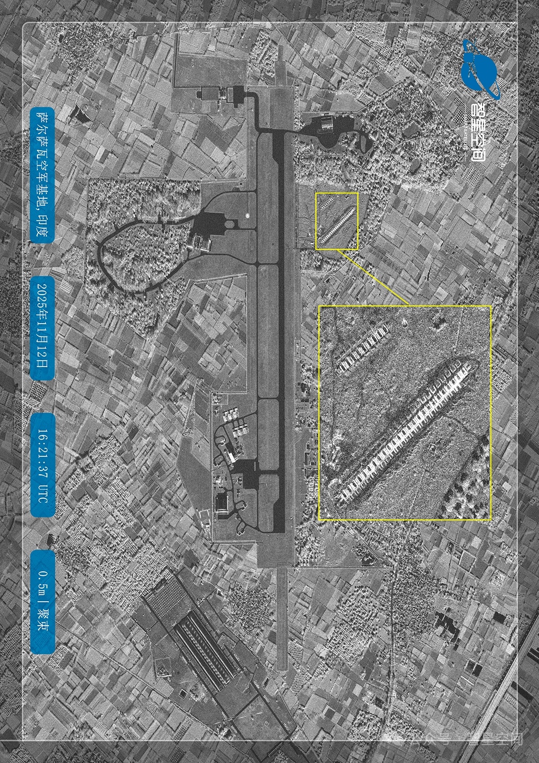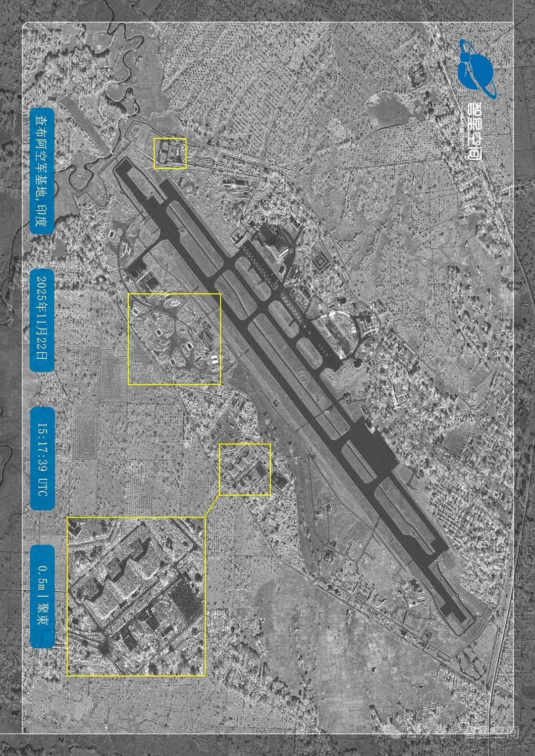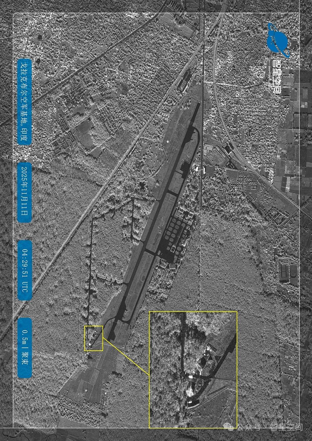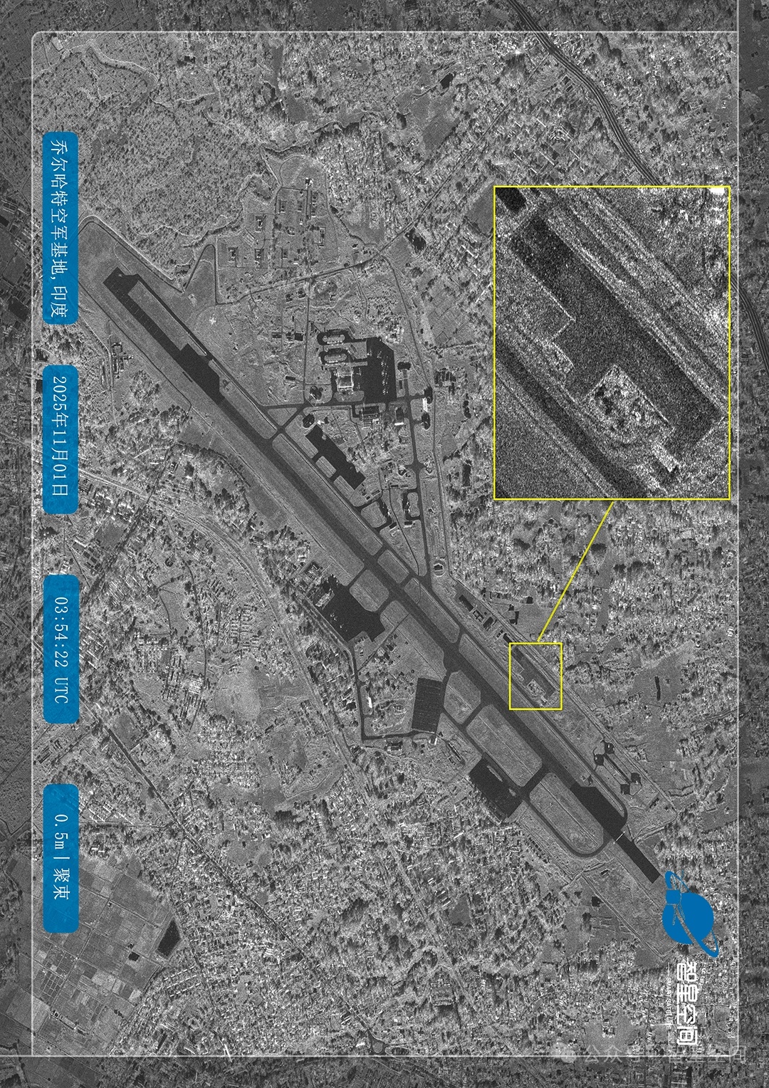 我国商业航天公司“智星二号A星”雷达卫星11月拍摄的印度东北部空军基地,其靠近藏南地区。雷达影像显示,多处场坪正在进行新建与扩建,部分原有设施也在升级改造,区域内施工机械活跃,其地面保障设施正处于全面强化与更新阶段。