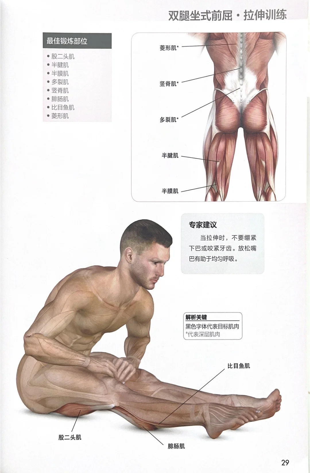 宝子们!分享超火的双腿坐式前屈拉伸,专门松解腘绳肌,久坐、运动后必练~ 🔍步骤: ① 坐直地板,双腿并拢前伸,双脚放松微弯; ② 身体前倾,腹部贴大腿,前臂放膝盖上; ③ 缓慢回正,重复动作~ ⚠️要点: • 保持臀部弯曲、脊椎笔直; • 别屏气,放松呼吸更舒服! 💪进阶版: 弹力带绕脚前掌,双手向上拉,拉伸感直接拉满~ 练完腿后侧超舒展,快码住练!