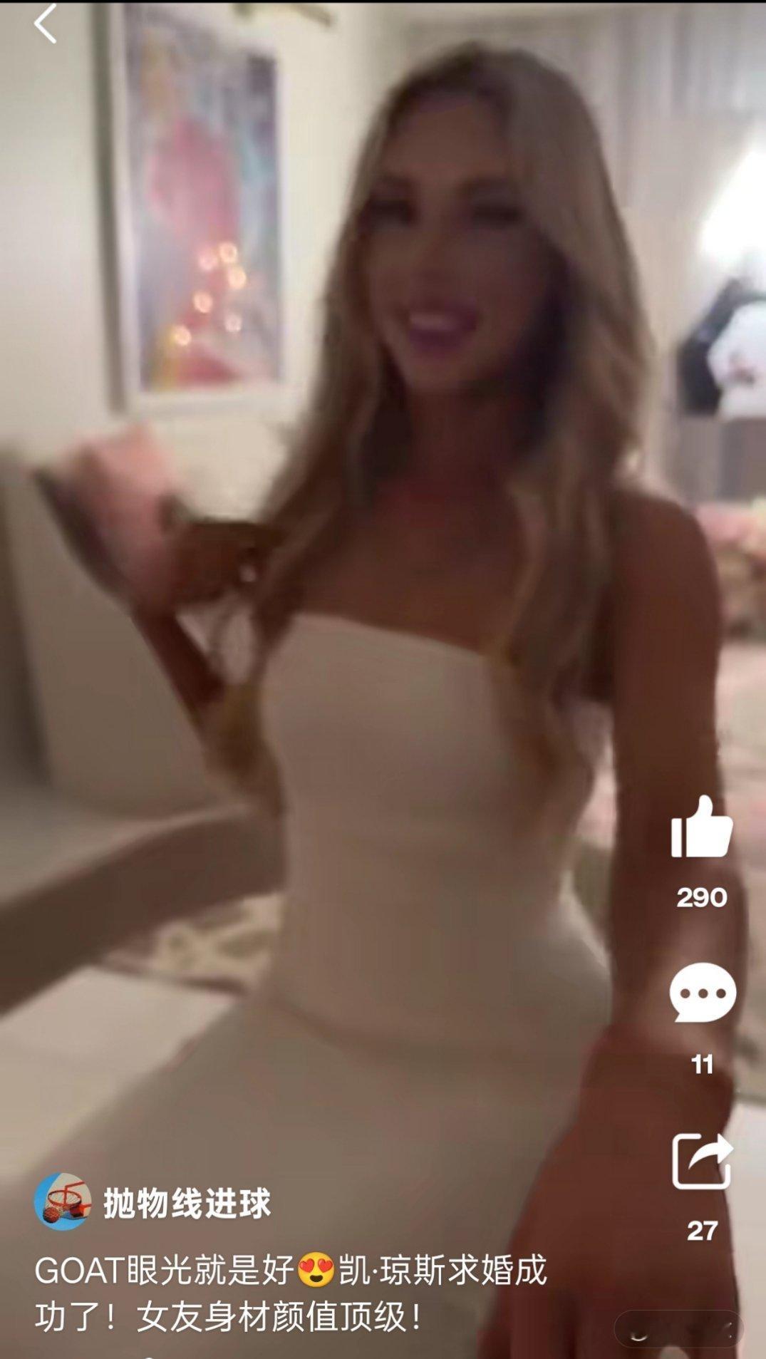▲凯-琼斯向他那足球队女朋友求婚成功了
