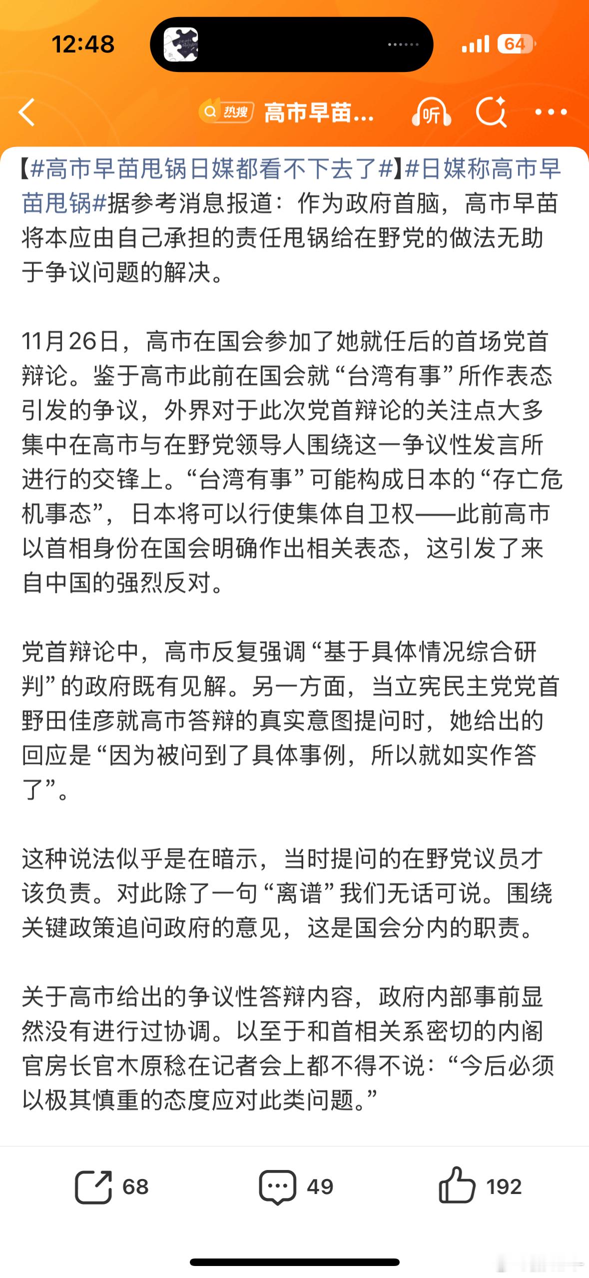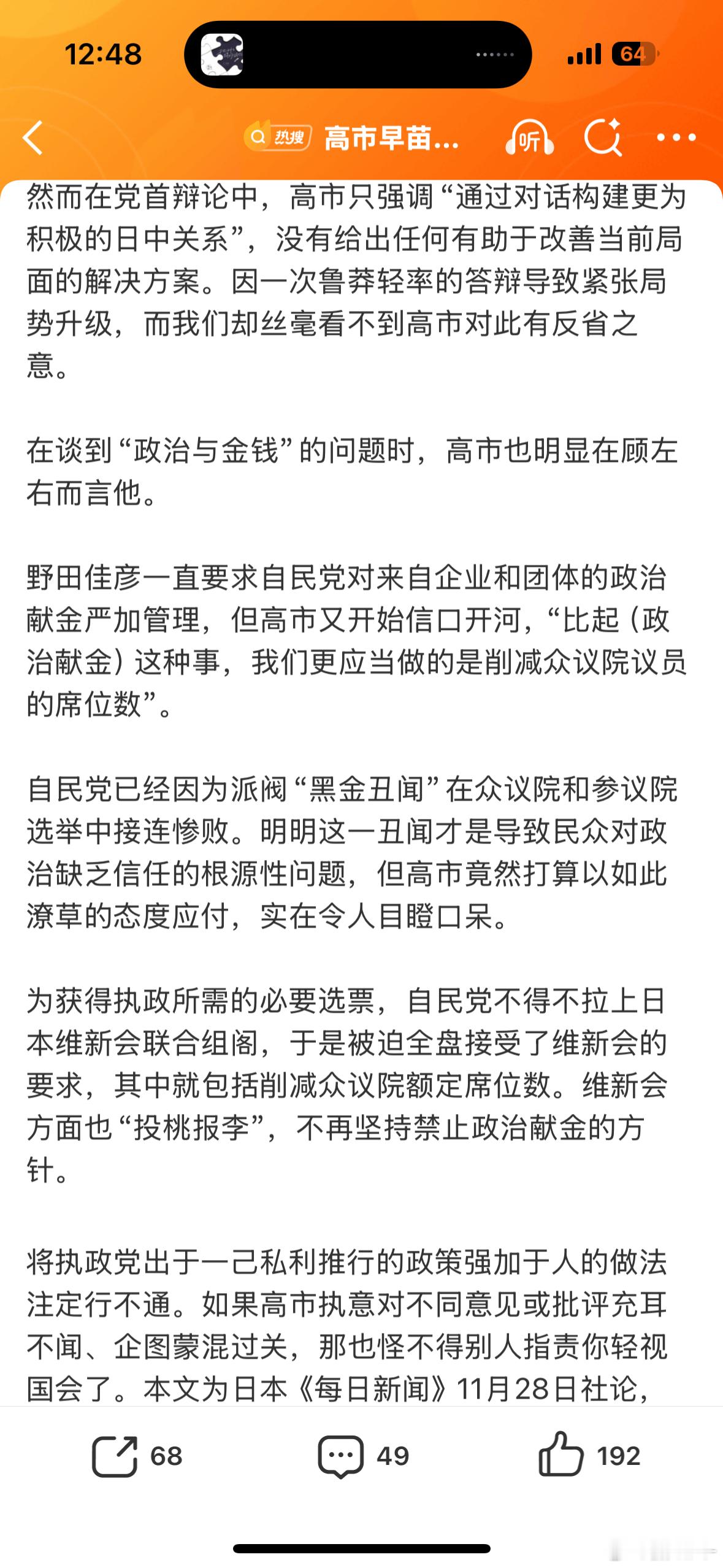 日媒称高市早苗甩锅这么快就给自己找台阶下了?这下日本的政党成牺牲品了,但也不是啥坏事,起码看清楚了高市早苗的真正嘴脸了对吧