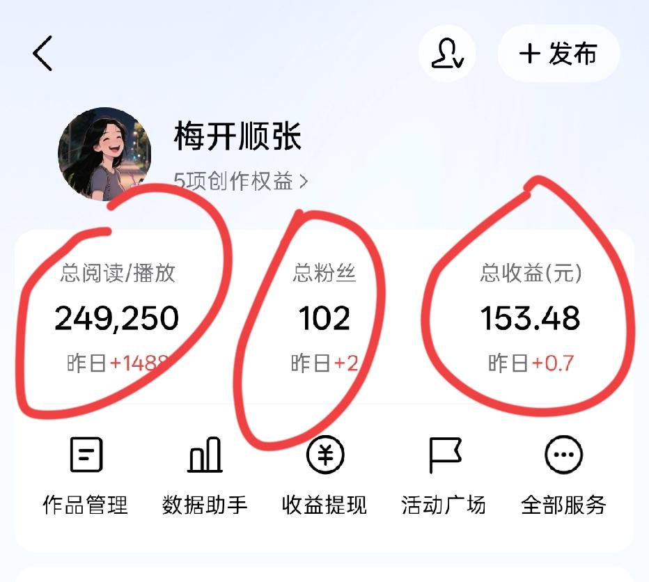 写头条已满4个月,可谓是“阅读量一路狂飙,粉丝量缓缓前行”。总阅读量都已突破24万+,可粉丝才刚过百。算下来,每2400个读者里才有1个关注的,这比在大街上要到别人微信还难😅 昨天更是离谱,阅读量涨了1488,粉丝只涨2个,收益仅涨7毛。换算一下,我码的每个字大约只值0.00047元,四舍五入就是开启了“用爱发电还附赠视力下降”的套餐。 朋友调侃我:“你这数据,就像努力考60分的学渣,阅读量是卷面得分,粉丝量是老师给的同情分,收益则是食堂阿姨抖勺后剩下的菜汤。” 也罢,毕竟咱这账号秉持“流量我拥有,粉丝看缘分,赚的不是钱,是电子功德”的理念。今天依旧继续码字,争取下个月让那7毛变成1块,达成“收益翻倍”的小目标!
