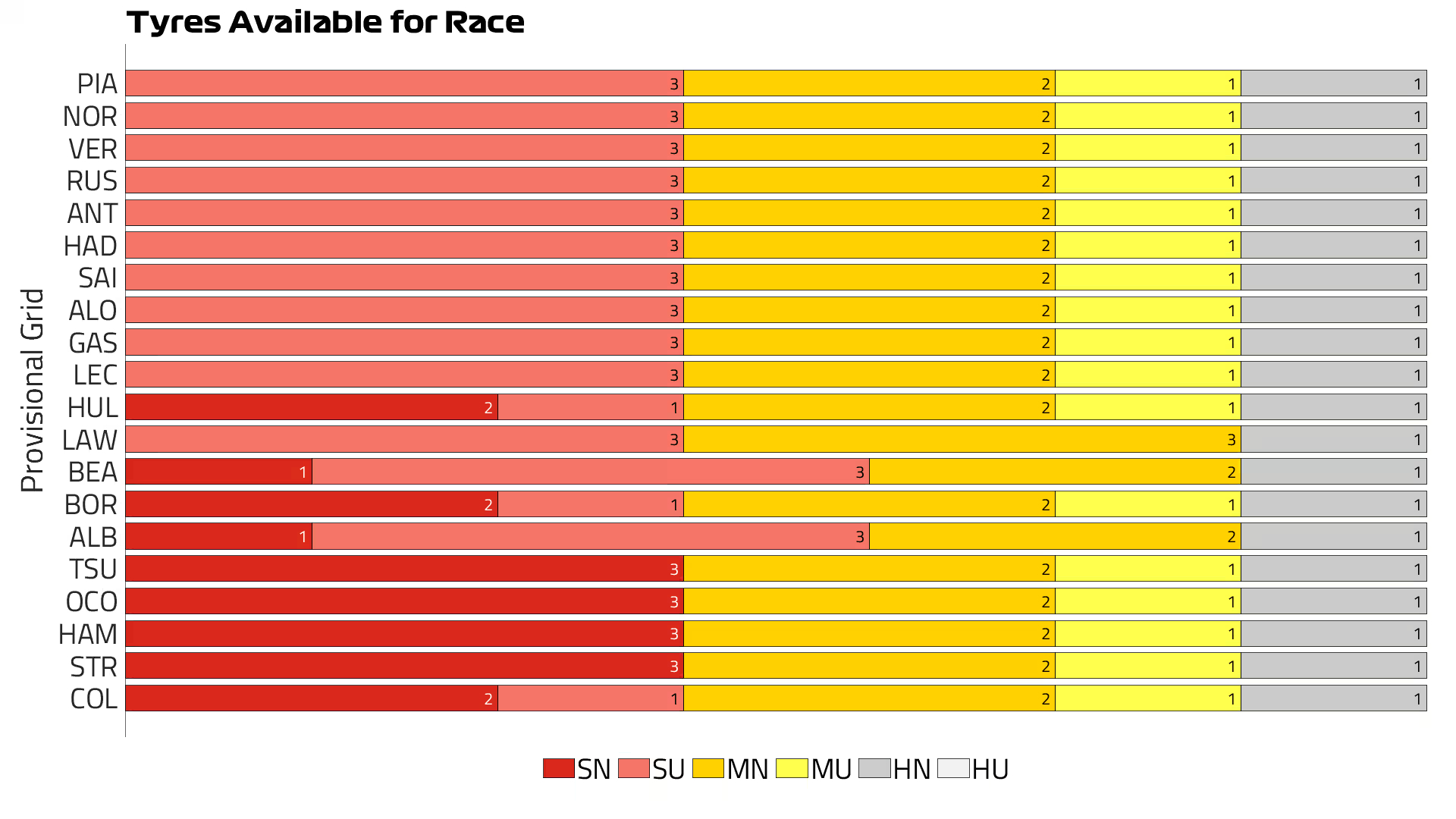 倍耐力预测的卡塔尔大奖赛正赛轮胎策略,以及各车手的剩余轮胎情况F12025F1卡塔尔大奖赛