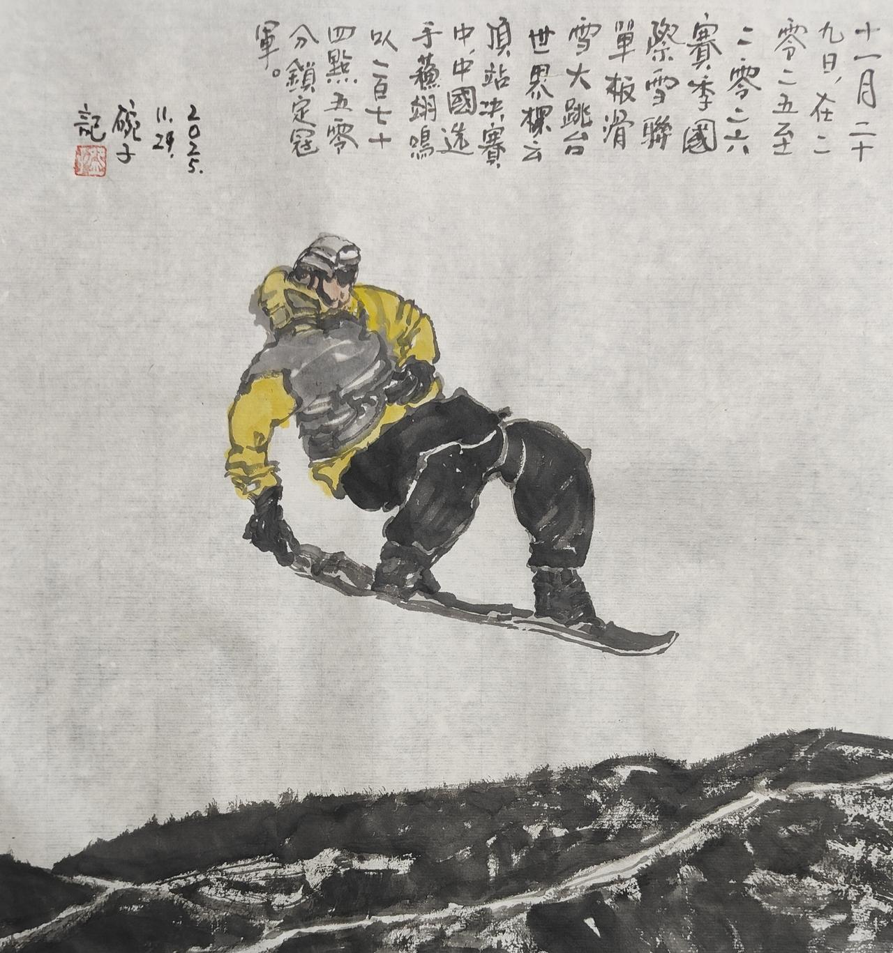2025碗子记事:11月29日,在2025–2026赛季国际雪联单板滑雪大跳台世界杯云顶站决赛中,中国选手苏翊鸣从174.50分锁定冠军。2025.11.29.碗子记之