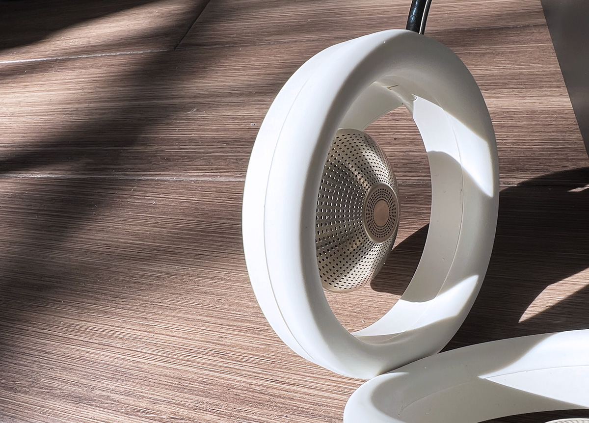 耳机的整体造型和传统的头戴式耳机大差不差,但是细节的不同在于耳罩部分,传统的头戴式耳机耳罩为一个半开放式,而Bolt的耳罩部分则采用的是全开放式的设计,