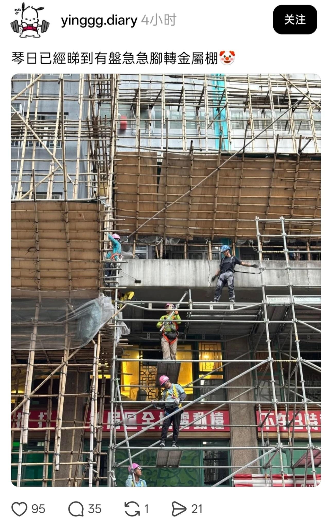 吸取教训,香港部分修建楼房开始将竹子脚手架换成钢管!虽然网上吵得沸沸扬扬,一部分“香港人”在网络上狡辩称竹子安全、不易燃,但近日的现场图显示,香港部分修建楼房已经开始紧急将竹子脚手架换成钢管脚手架了。看来此次的香港大火确实让很多人终于吸取教训,意识竹子脚手架不安全……烽火问鼎计划