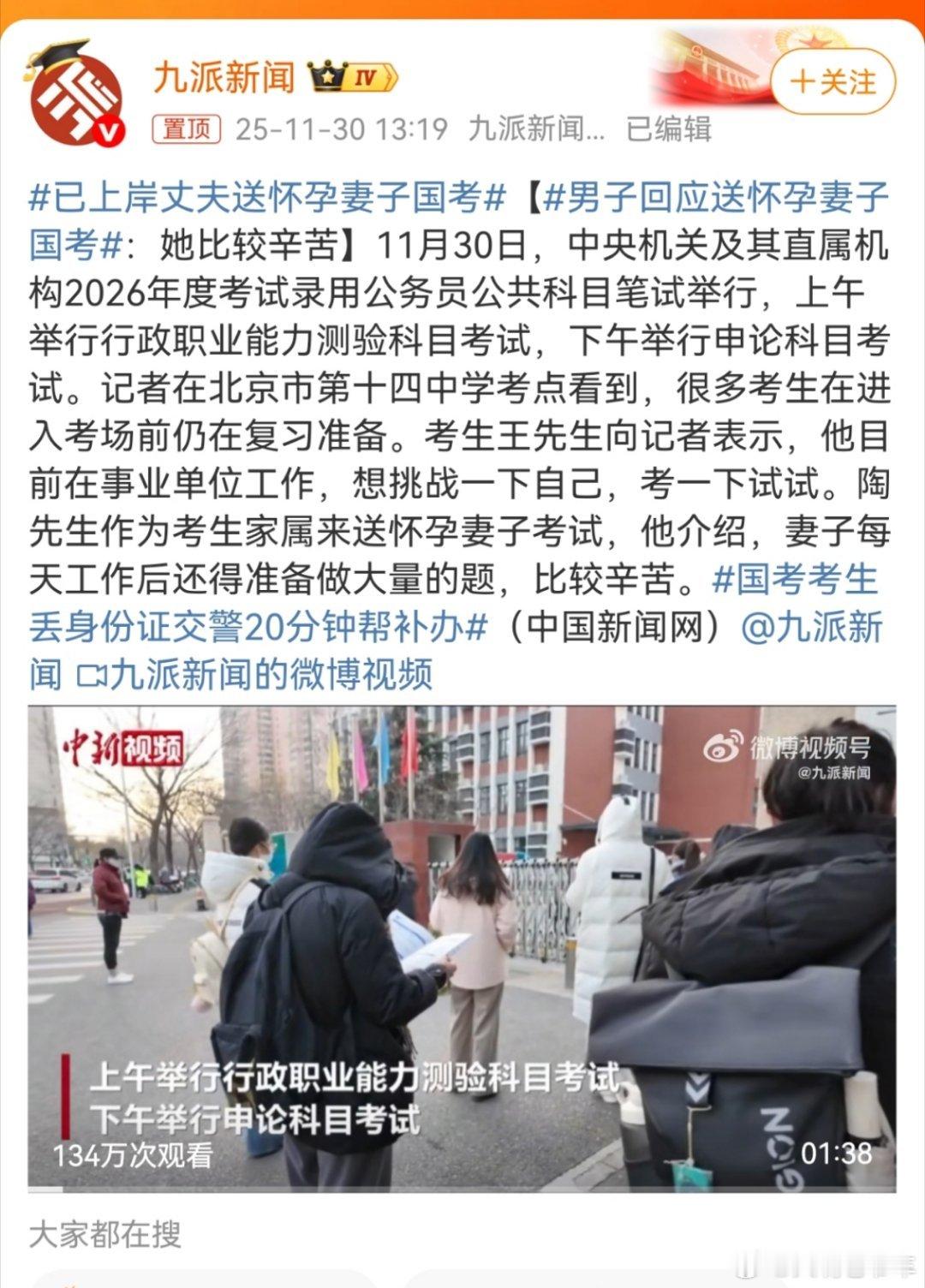 已上岸丈夫送怀孕妻子国考 这男人不错曾几何时,国考圈流行一种说法:国考上岸后,大多数人第一件事情就是离婚或者分手。陶先生自己早就上岸事业单位,工作稳定踏实。不但跟老婆踏踏实实过日子,还不遗余力地支持妻子参加国考。看着妻子每天下班就扎进题海里,刷题到后半夜,心疼得直咧嘴,主动包揽了所有家务。这男人是个好人啦情感我的生活好有意思