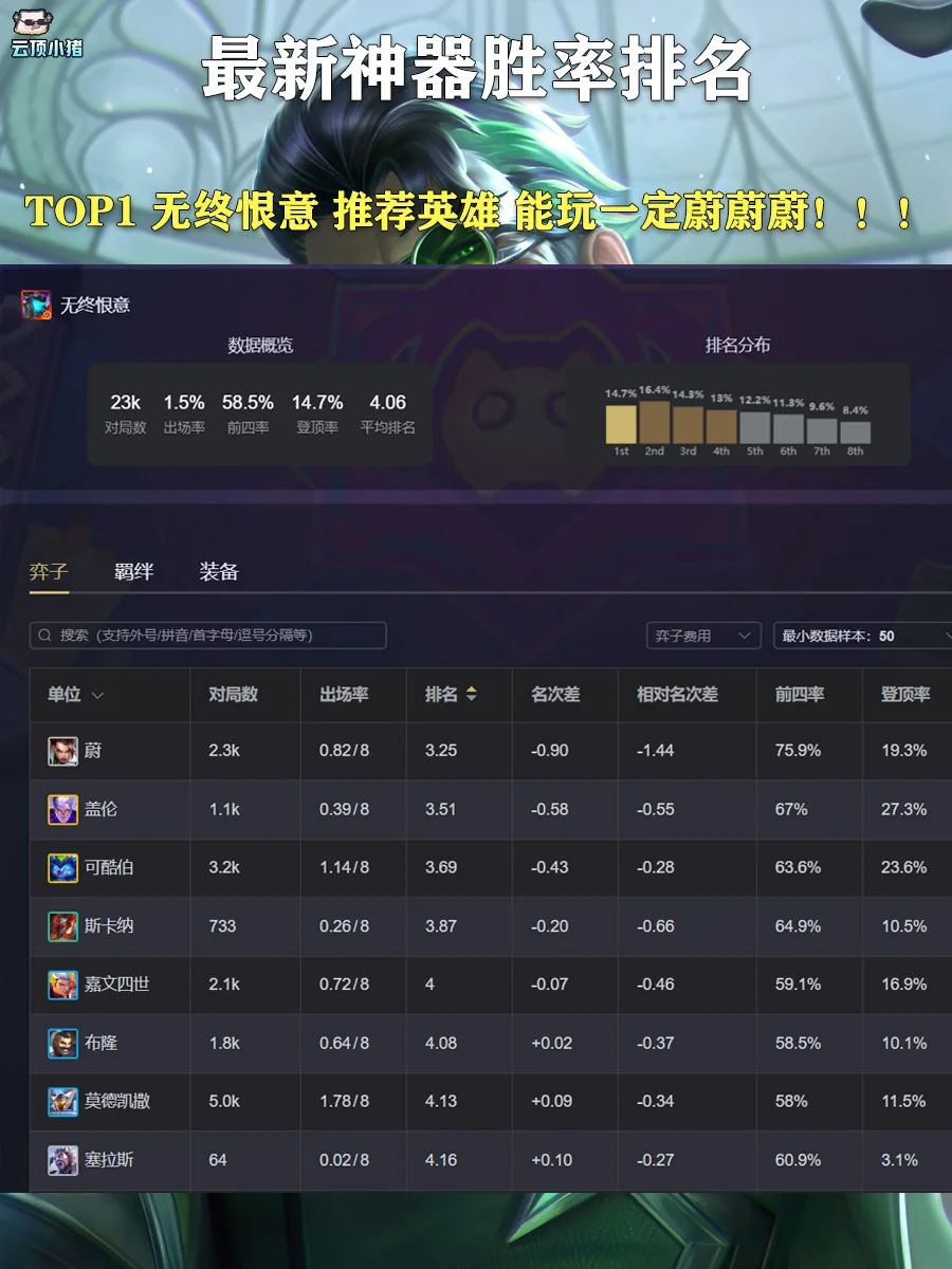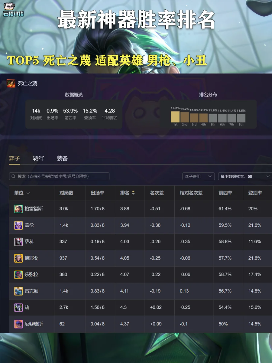 最新神器胜率排行榜!拿到前二躺着捡分!