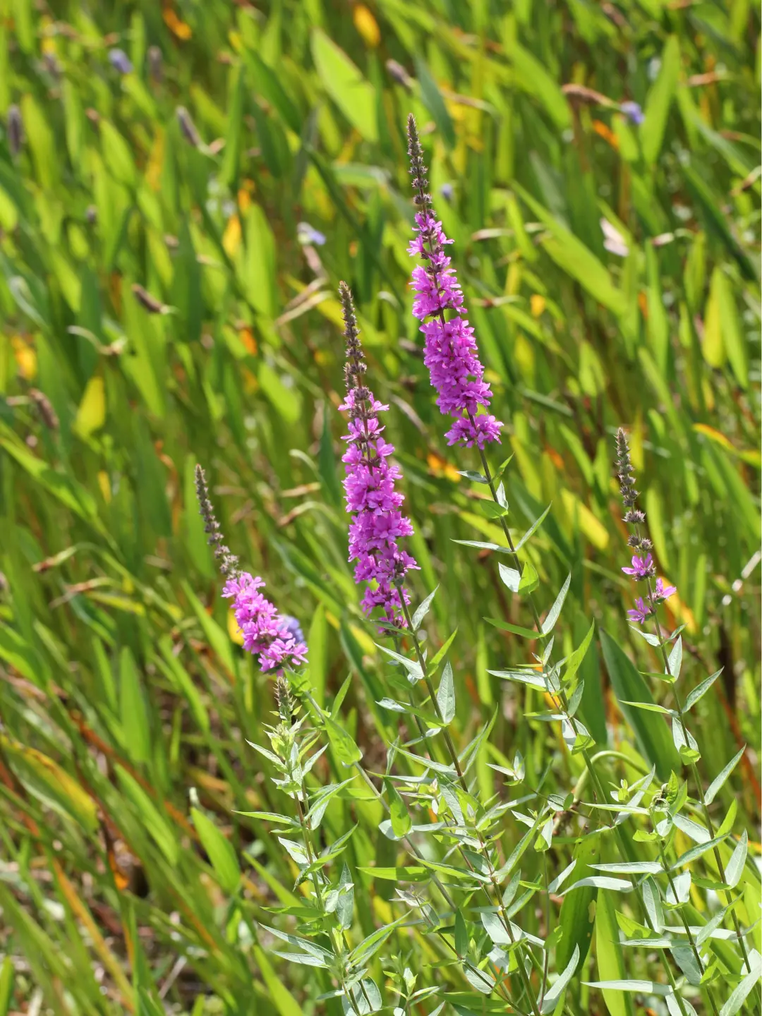 千屈菜是众多水生昆虫的活动场所,比如蜻蜓可以停歇在上面伺机捕食,萤火虫也可以爬上它的顶端呼唤伴侣。
