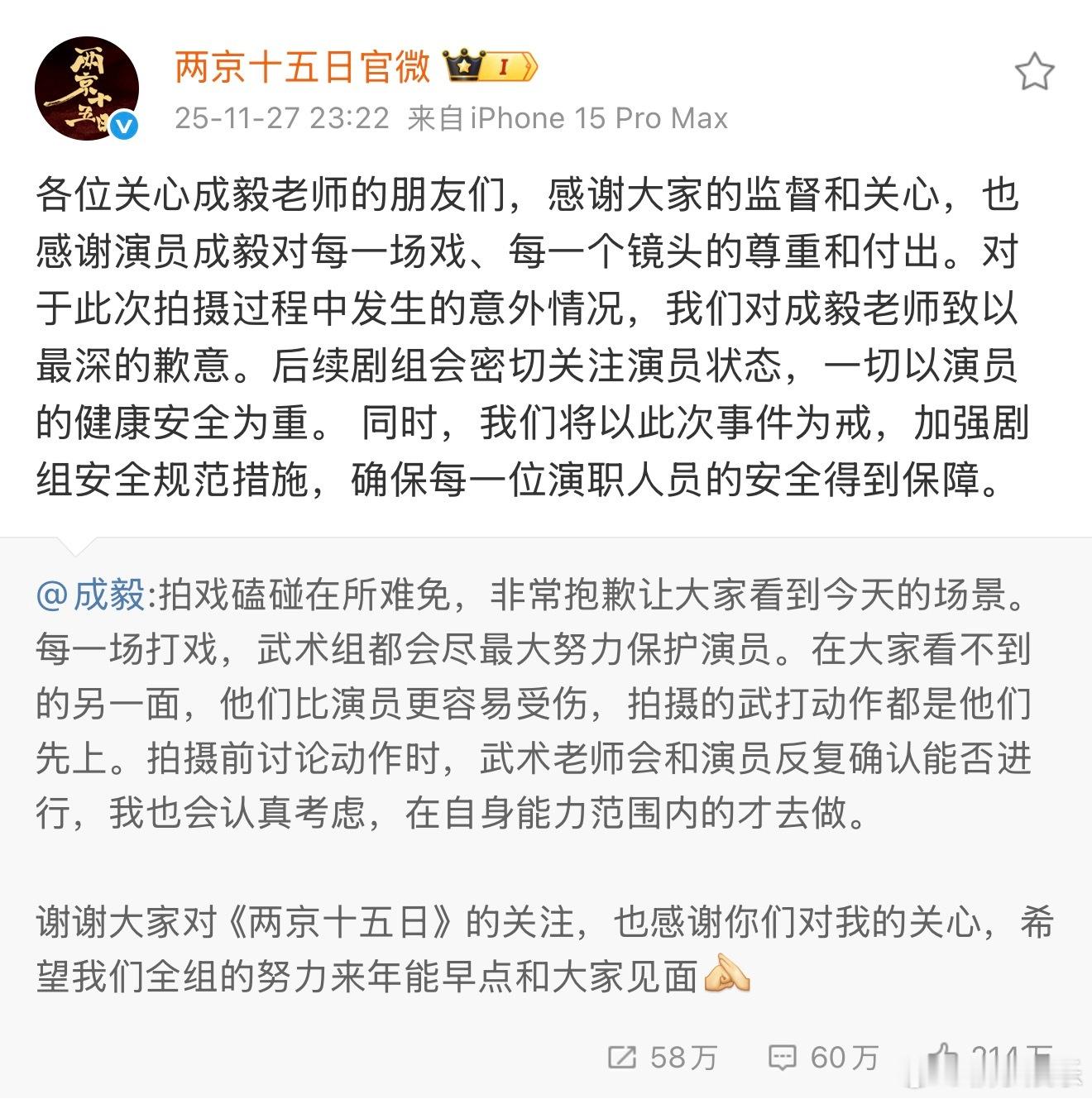 两京十五日剧组更换威亚两京十五日剧组在前几天道歉之后更换了安全性更高的威亚,演员们的拍摄安全能得到保障了