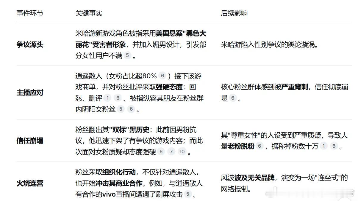 我来给vivo洗个地(bushi)没吃过散人这个瓜,刚去搜了下大致明白了怎么回事。简单来说就是他推广的米哈游新游戏里面有某个设定“辱女”了,刚好他的女粉占比不少(可能里面不少打拳的?),总之这些之前为他摇旗呐喊的女粉感受到了强烈背刺,不断扒出他的“黑历史”,诸如开黄腔质量的,一般一个人是不可能完全没黑点的,接着米哈游这股风,越烧越旺。加上他的躺平最终引起了这么一场赛博猎巫,然后其他品牌也受到了牵连,这些品牌算是受到了无妄之灾。加上这些品牌的对家在后面煽风点火,于是就这样了。对家在这种情况下搞事也属于常规操作了有些黑公关手段只会让人感叹高端的商战往往采用最朴素的方式蓝厂在B站发的X300单子说白了主打一个大水漫灌,散人这种叫的上号的博主一定有一份,怎么说呢,躺平装死吧。再怎么公关都无济于事了,因为有些人都把这个事说成是翻版杨笠和京东了而互联网上一百个人发声就能掀起滔天巨浪,实属没辙,装死就是最好的办法vivo客服回应直播间置顶争议评论vivo逍遥散人vivo