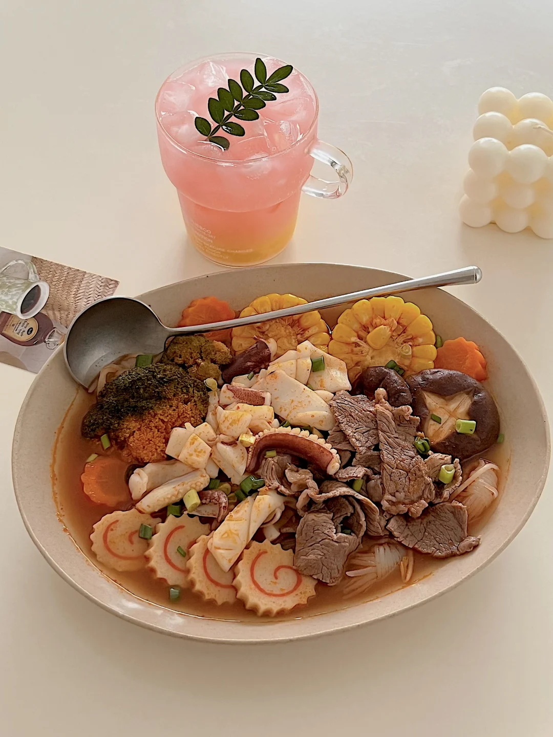 天气冷了,喜欢自己在家吃点水煮菜 好喜欢这种一锅端的水煮菜呀[微笑R] 冰箱有什么就下什么,太方便啦 做法: ✨水开加入酸汤火锅底料 ✨先煮不容易熟的蔬菜(比如玉米、胡萝卜、香菇) ✨再下容易熟的青菜,肉类,烫一下就好啦 漂亮火锅和漂亮水,是谁又幸福了😊