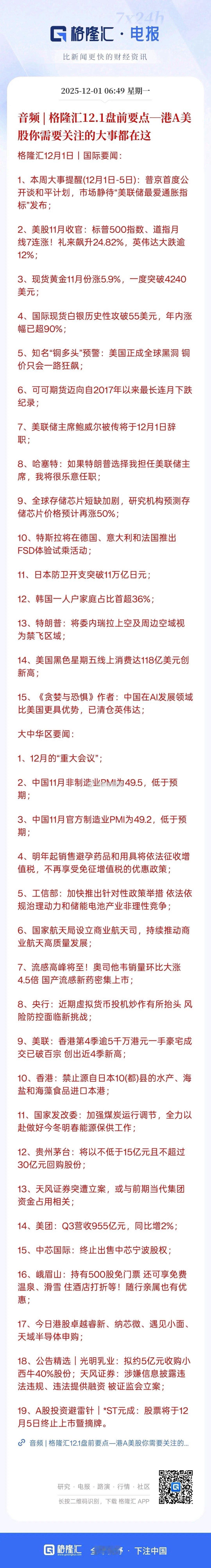12.1盘前要点—港A美股你需要关注的大事都在这