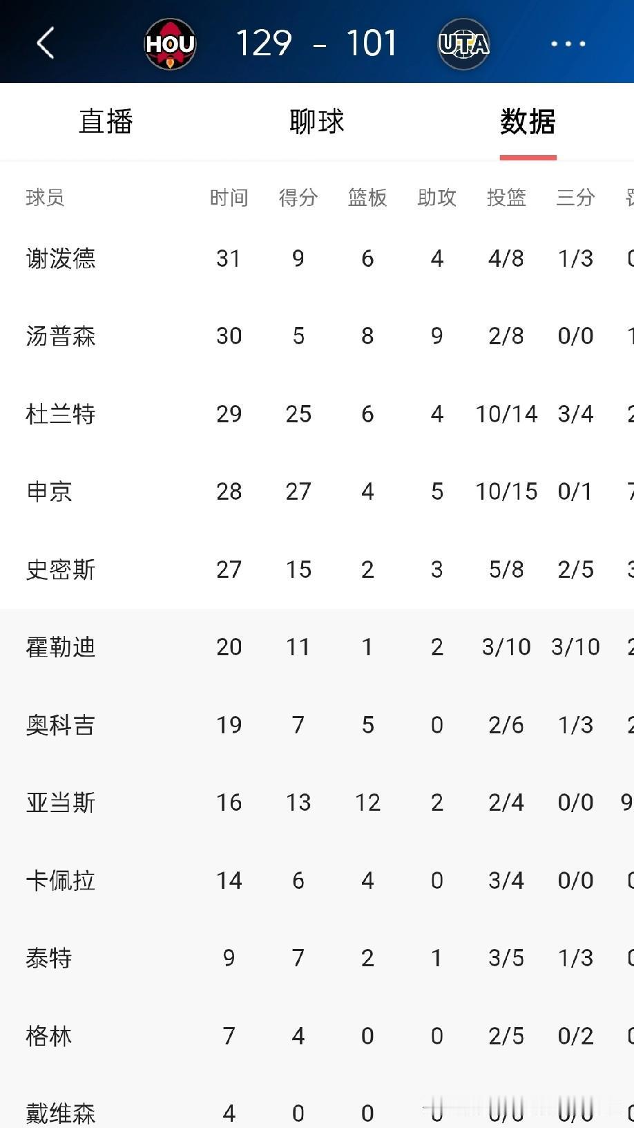 火箭129-101战胜爵士,可以说是小菜一碟!!!