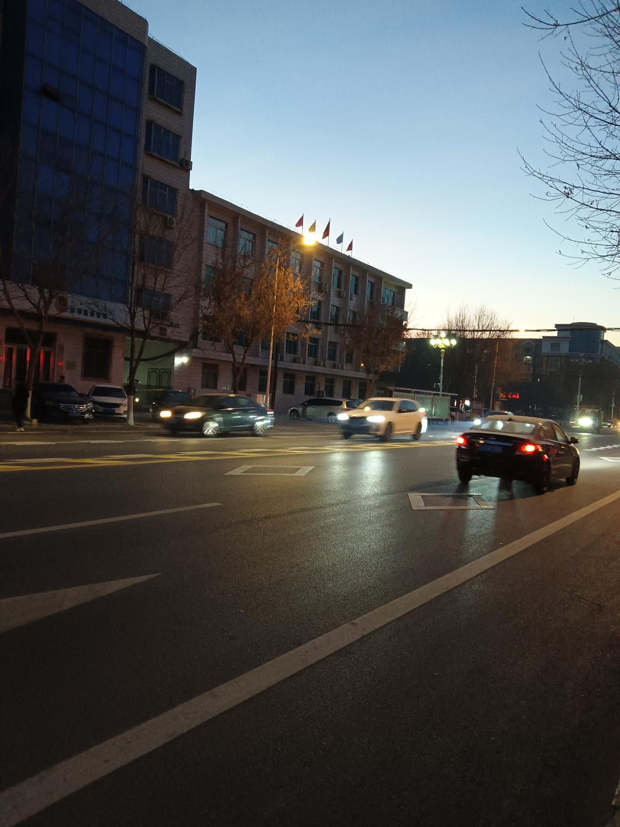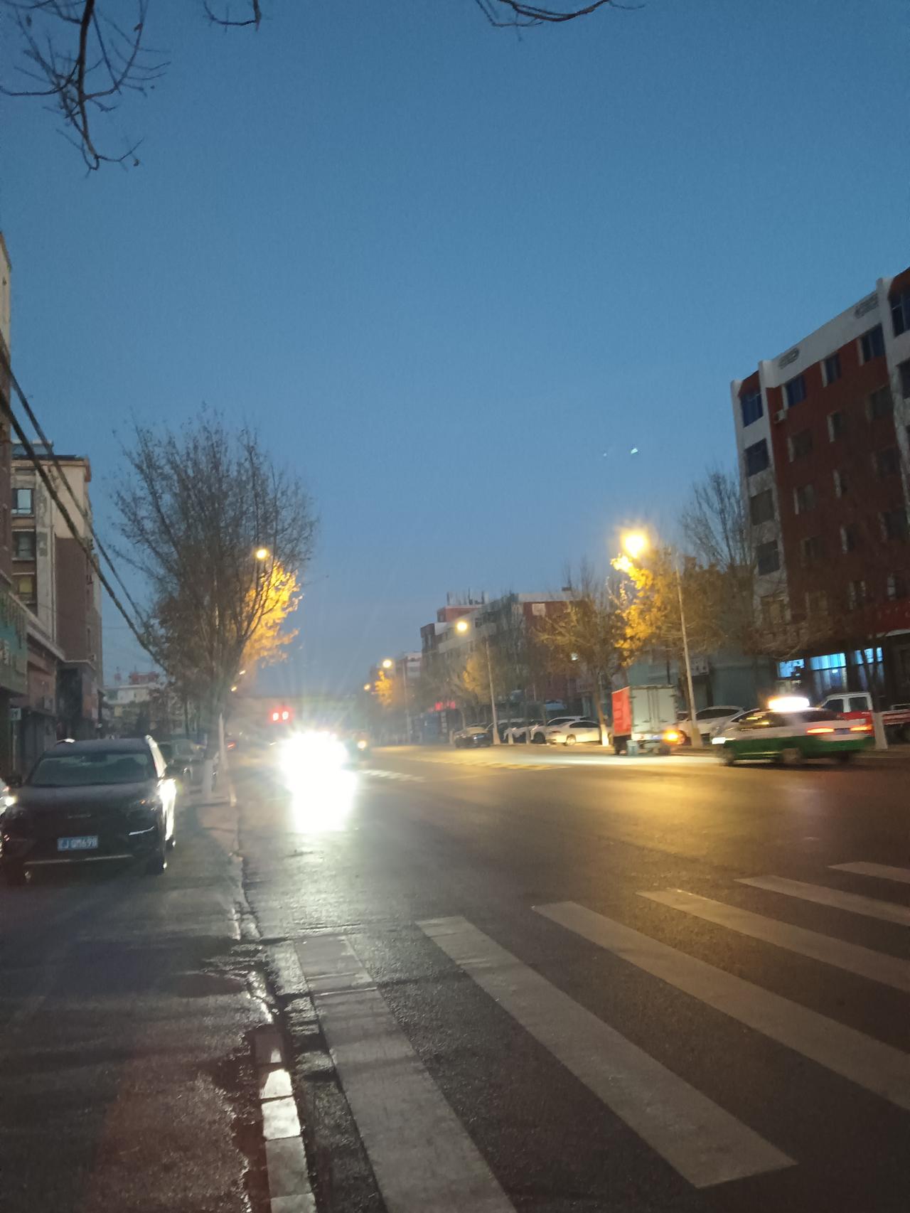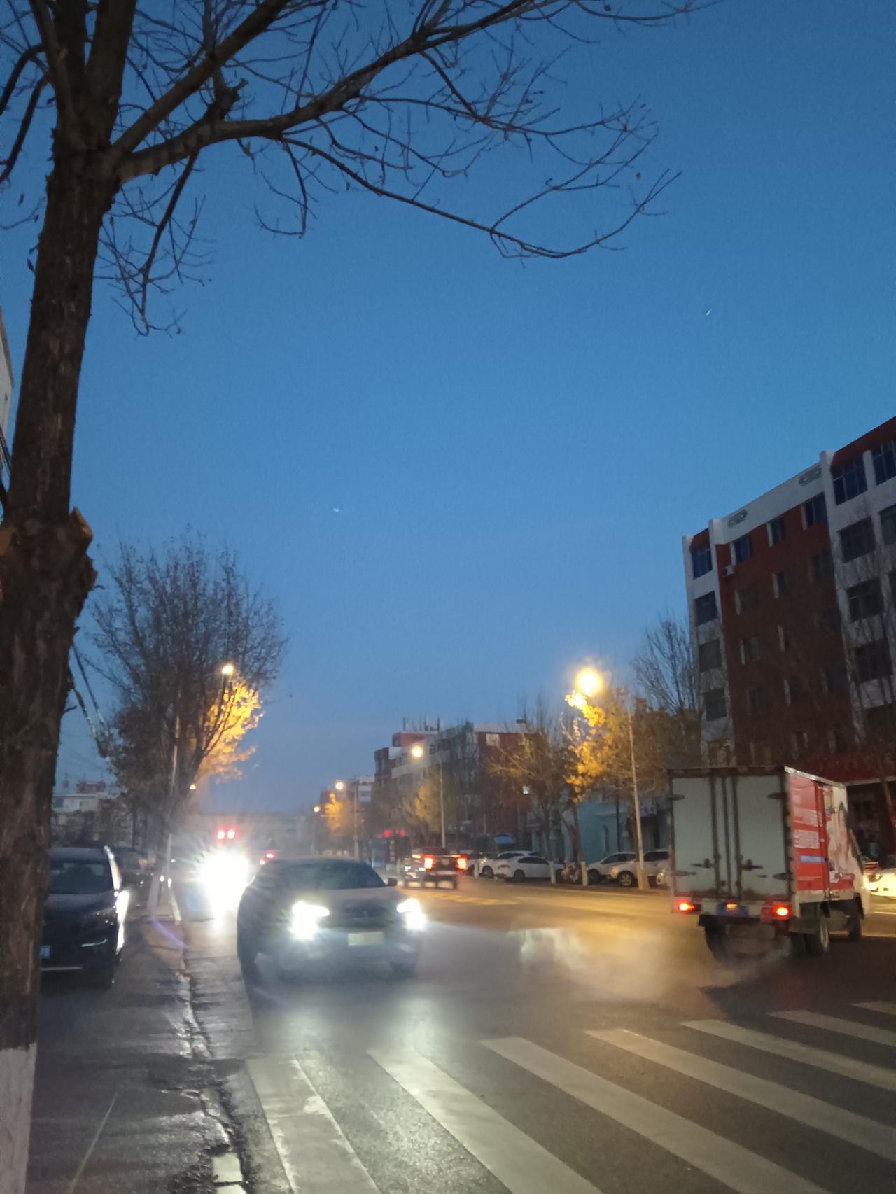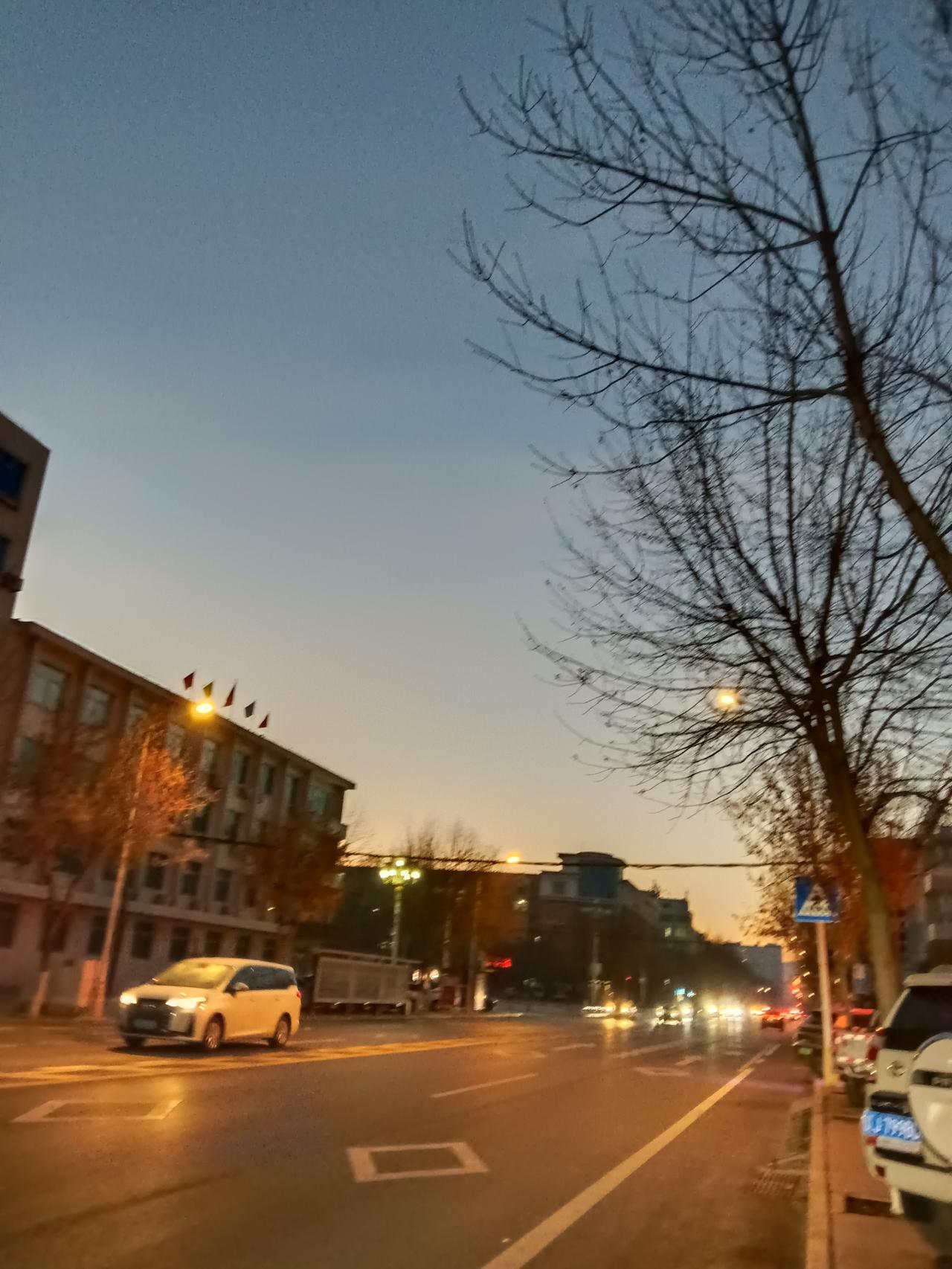 黄昏时分,车流穿梭,城市在灯火中苏醒。