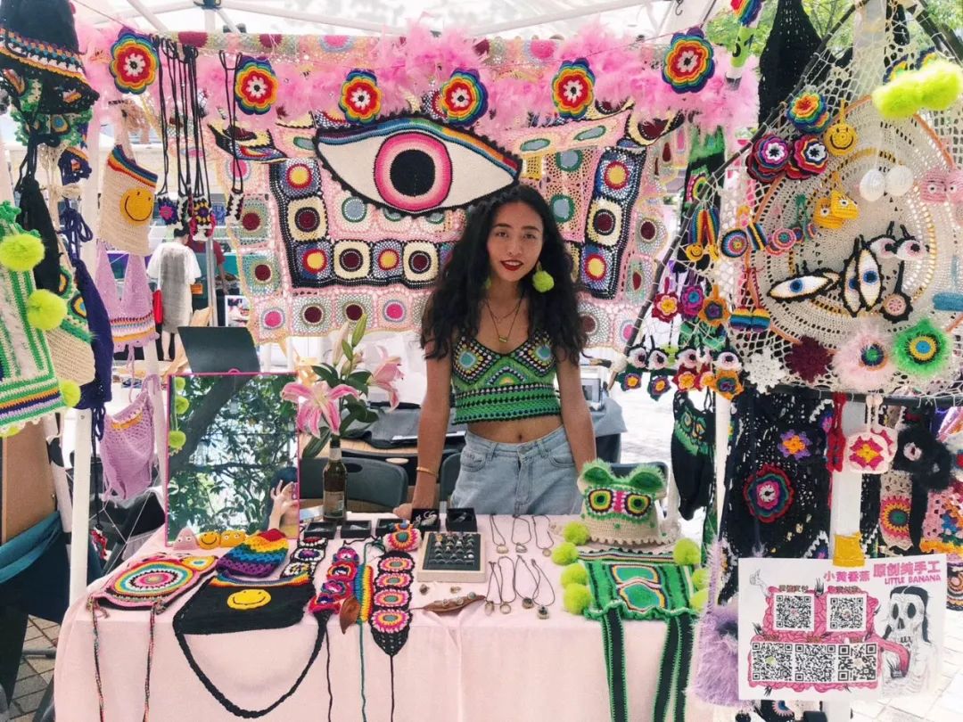一开始做钩织的时候,我没有任何启动资金,因为爸妈也濒临破产了,所以我只能到全国各地去摆摊、参加创意市集,以我本人的形象,带着我的产品去联结不同的客人。