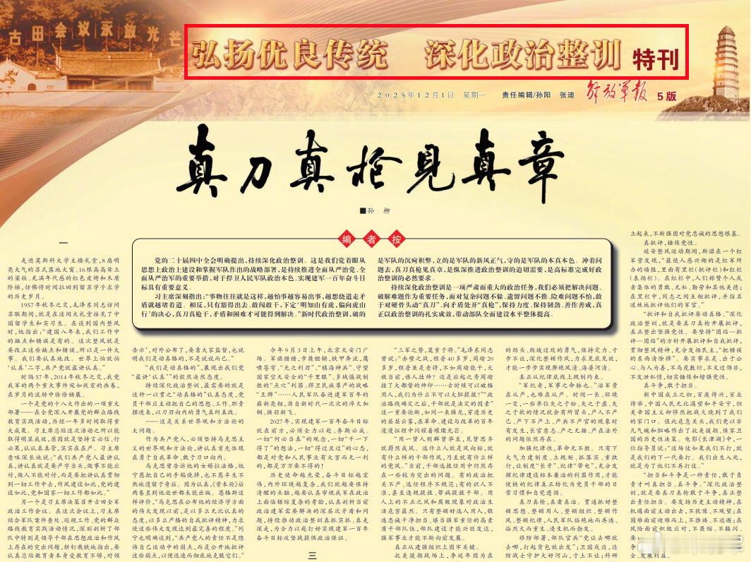 今天《解放军报》的特刊中写到——党的十八大前的一段时间,军队内外都产生了许多尖锐复杂的问题。敌对势力西化、分化、遏制战略步步紧逼,“颜色革命”“文化冷战”“政治转基因工程”花样翻新,铸魂与蛀魂、固根与毁根、扛旗与改旗的较量尖锐激烈。我军党的领导弱化、党的建设缺失、管党治党不力,和平积弊严重,腐败问题频发,很多领域乱象丛生……