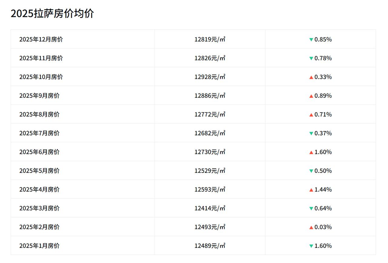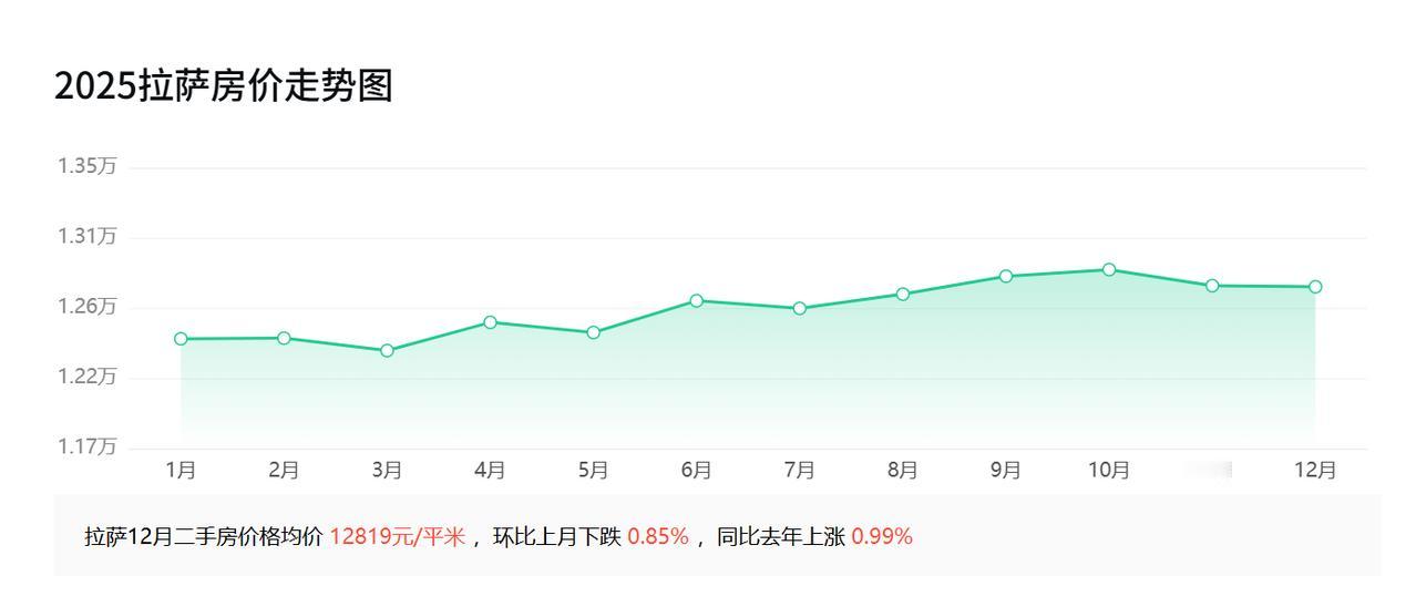 2015年11月,拉萨二手房均价5980元; 2016年11月,拉萨二手房均价7656元; 2017年11月,拉萨二手房均价9170元; 2018年11月,拉萨二手房均价11169元; 2019年11月,拉萨二手房均价12012元; 2020年11月,拉萨二手房均价12451元; 2021年11月,拉萨二手房均价12847元; 2022年11月,拉萨二手房均价12578元; 2023年11月,拉萨二手房均价12227元; 2024年11月,拉萨二手房均价12777元; 2025年11月,拉萨二手房均价12826元。 漫心r在整理拉萨近十年房价的时候发现,拉萨的房价真不便宜,从均价上来看,比一些二线城市的房价还高,今天,漫心r就用十年的数据(2015-2025年)并结合当地的经济人口数据,聊一聊这件事,漫心r认为有以下几个原因: 1、拉萨经济发展势头十足,2024年拉萨GDP 990.04亿元,2025年前三季度拉萨GDP同比增长7.1%,这个增速放眼全国也是名列前茅的; 2、拉萨的城镇人口有64.03万人,城镇化率达73.06%,外来购房需求占比20%-30%,有那曲、山南等地居民大量迁入,并且有大量旅游从业者在此定居; 3、由于高寒缺氧、年施工期短、材料运输成本高等原因,拉萨的建筑成本比内地高30%以上; 4、拉萨年接待游客超3000万人,短租和民宿市场推涨房价,并且由于南北山绿化等工程限制城市扩张,导致新增住宅用地稀缺。 拉萨这座日光城,与其他城市相比,有其特殊性,她是世界知名的高原旅游城市,拥有独特的文化底蕴和旅游资源,但也面临着每个城市都会遇到的规律制约。