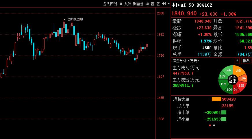 中国aI50再次化身救世主; 科技股领涨 就代表全市场有机会; 目前已经放量2300亿; 保持科技股领涨情况下,那么下午至少放量3000亿; 大盘有望攻击3920一线; 最后15分钟看能否3907收盘。