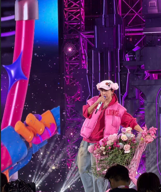 汪苏泷杭州演唱会创意杀疯了!安可曲《我的星球》搭配鲜花购物车,玫瑰康乃馨承载着专属浪漫,罗曼城城主的温柔具象化,推走小车的可爱瞬间,让现场甜度直接爆表~