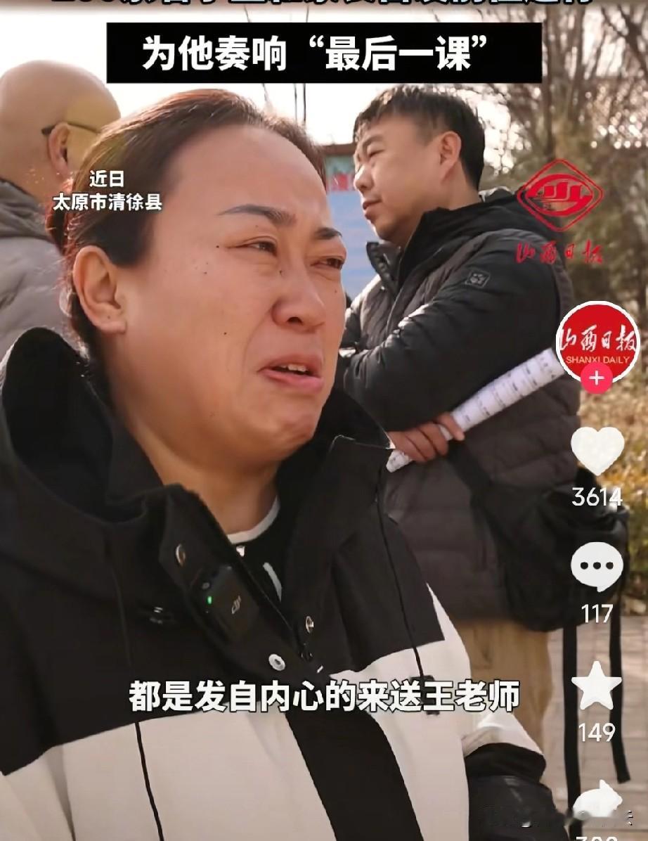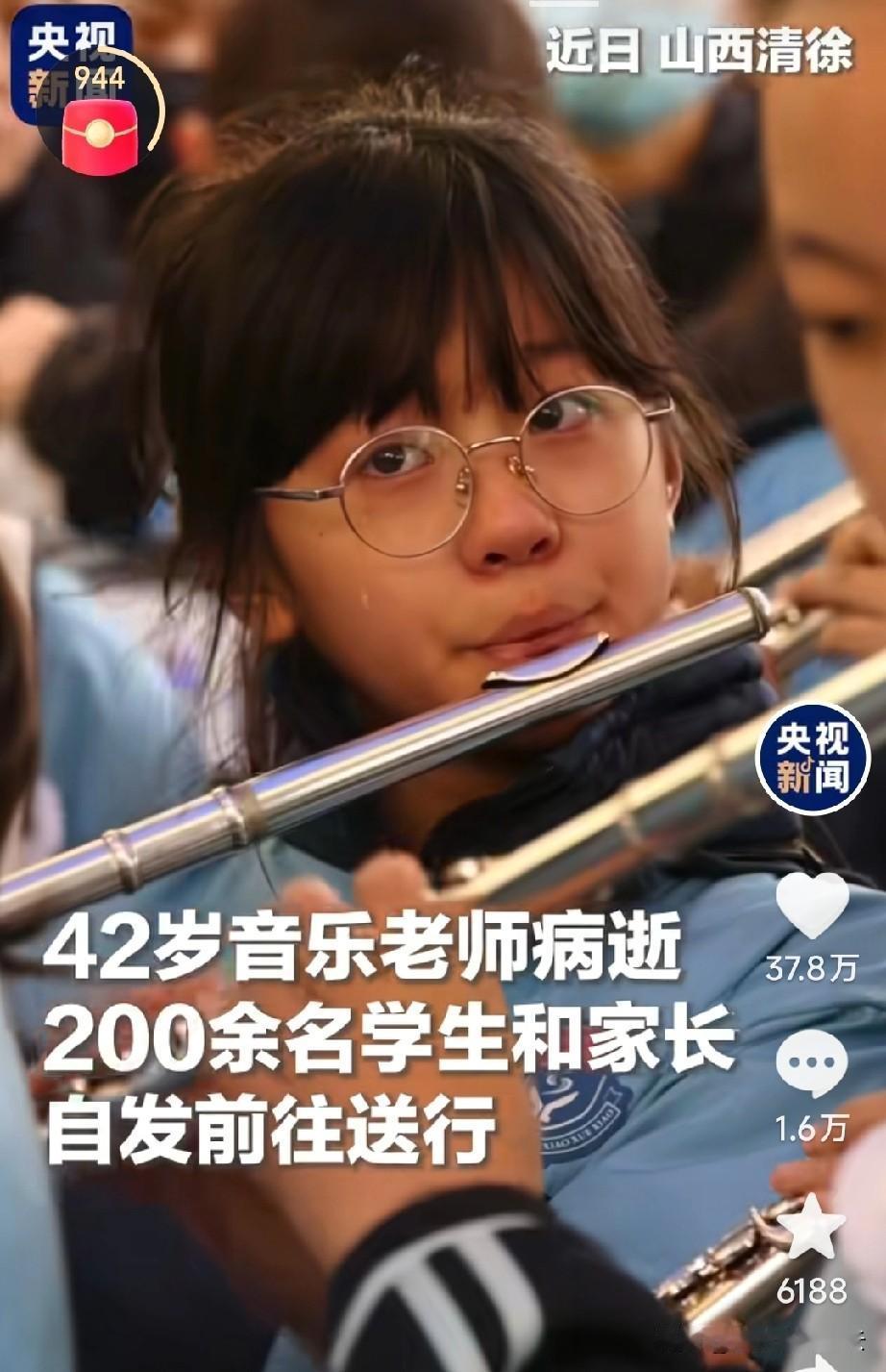 虽然我不认识这个老师,看到200多个学生和学生家长,来送别这个老师,就知道这个老师一定很好。 王永是个音乐老师,才42岁就去世了。很可惜,还这么年轻。他的葬礼上,一大早,200多名学生和学生家长就自发的去了,孩子们都拿着乐器,想用自己的方式送王老师一程。 这些学生,有学习没几年的小学生,也有初中生或是大学生,有个男生说,没有王老师,他就上不了山西大学。王老师对每个学生都付出了真心。 学生们演奏了王老师生前最爱的曲子,演奏的时候好多学生都哭了。我就知道这个老师是真好,只是太可惜,他还这么年轻。如果王老师在天堂看到这么多学生为他送行,他也会很欣慰的。 有网友说,老师能当到这个地步,也是值了。 王老师,一路走好![祈祷][祈祷][祈祷][祈祷][祈祷][祈祷][祈祷][祈祷][祈祷][祈祷][祈祷][祈祷][祈祷]