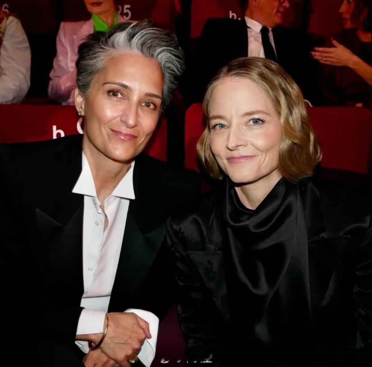朱迪·福斯特在马拉喀什国际电影节领取终身成就奖,她的妻子陪她一同出席了颁奖礼。—