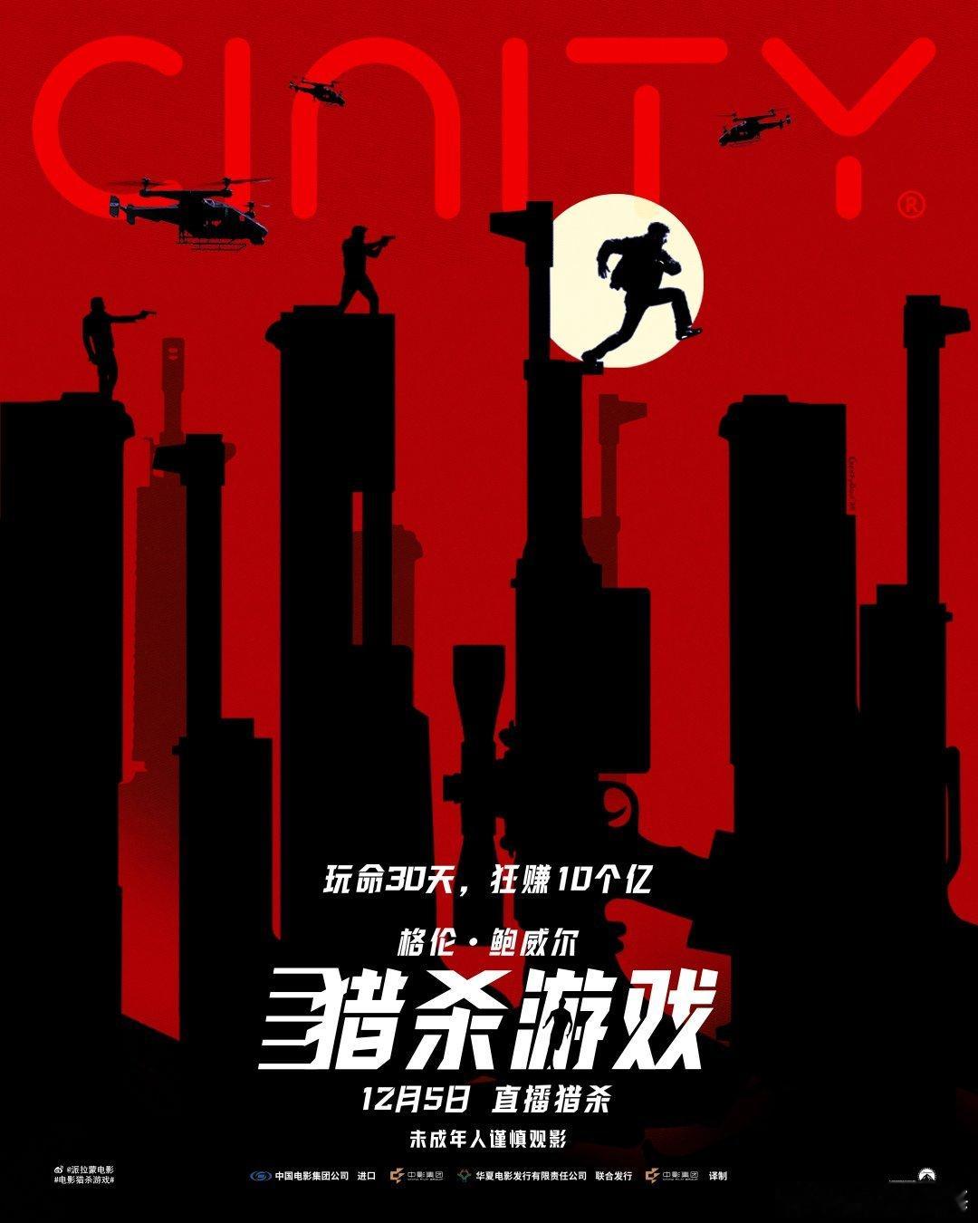 猎杀游戏预售开启 全明星阵容杀疯了!“灭霸”乔什·布洛林化身冷血制作人,“精灵王”李·佩斯加盟猎杀局,格伦·鲍威尔孤身对抗职业杀手,反乌托邦设定戳中爽点,黑色幽默混搭硬核动作,每帧都在突破感官极限,现已囤票坐等开杀!