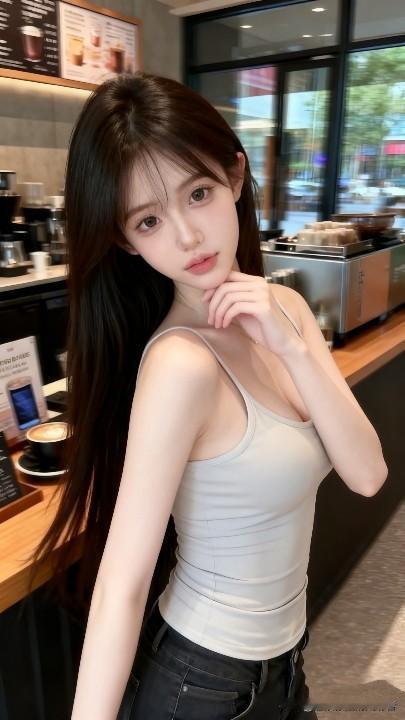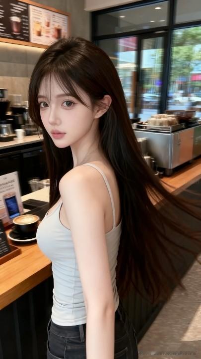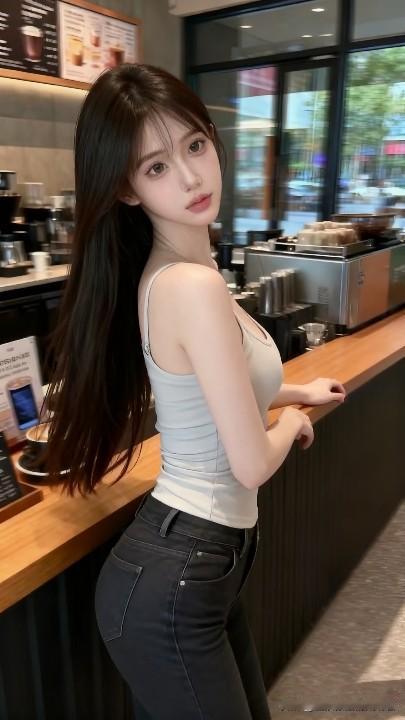 咖啡馆里的甜美少女,元气满满的一天!💕秋日里的咖啡馆 温柔咖啡店美女