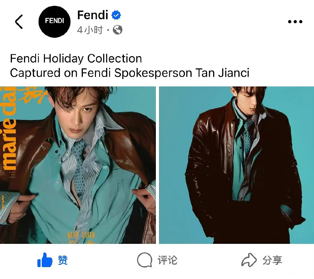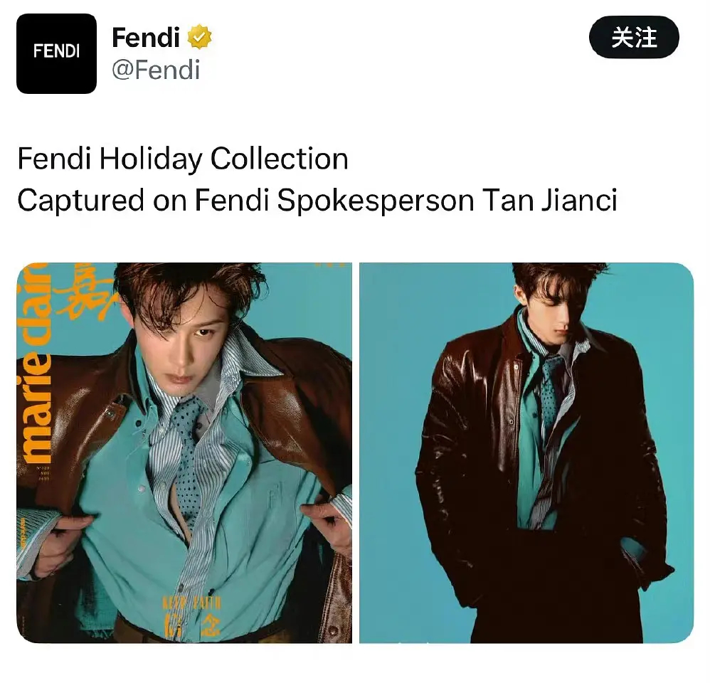 fendi官方Instagram、Facebook、Threads、Twitter更新檀健次嘉人封面,有点太爱了