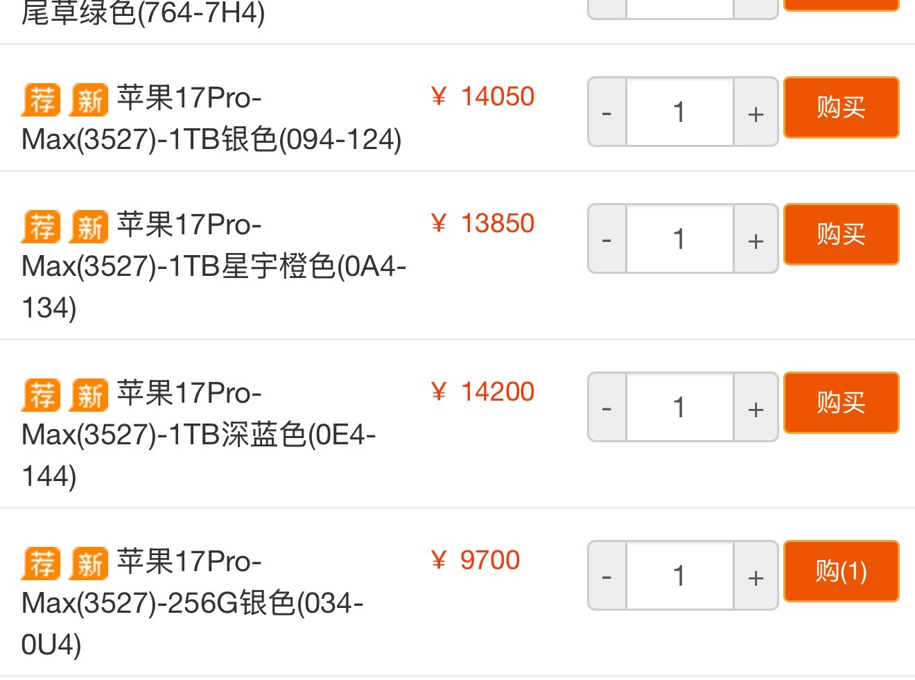 iPhone17 Pro Max 1TB版本的市场现货行情,又又又发神经了,最贵的居然是蓝色