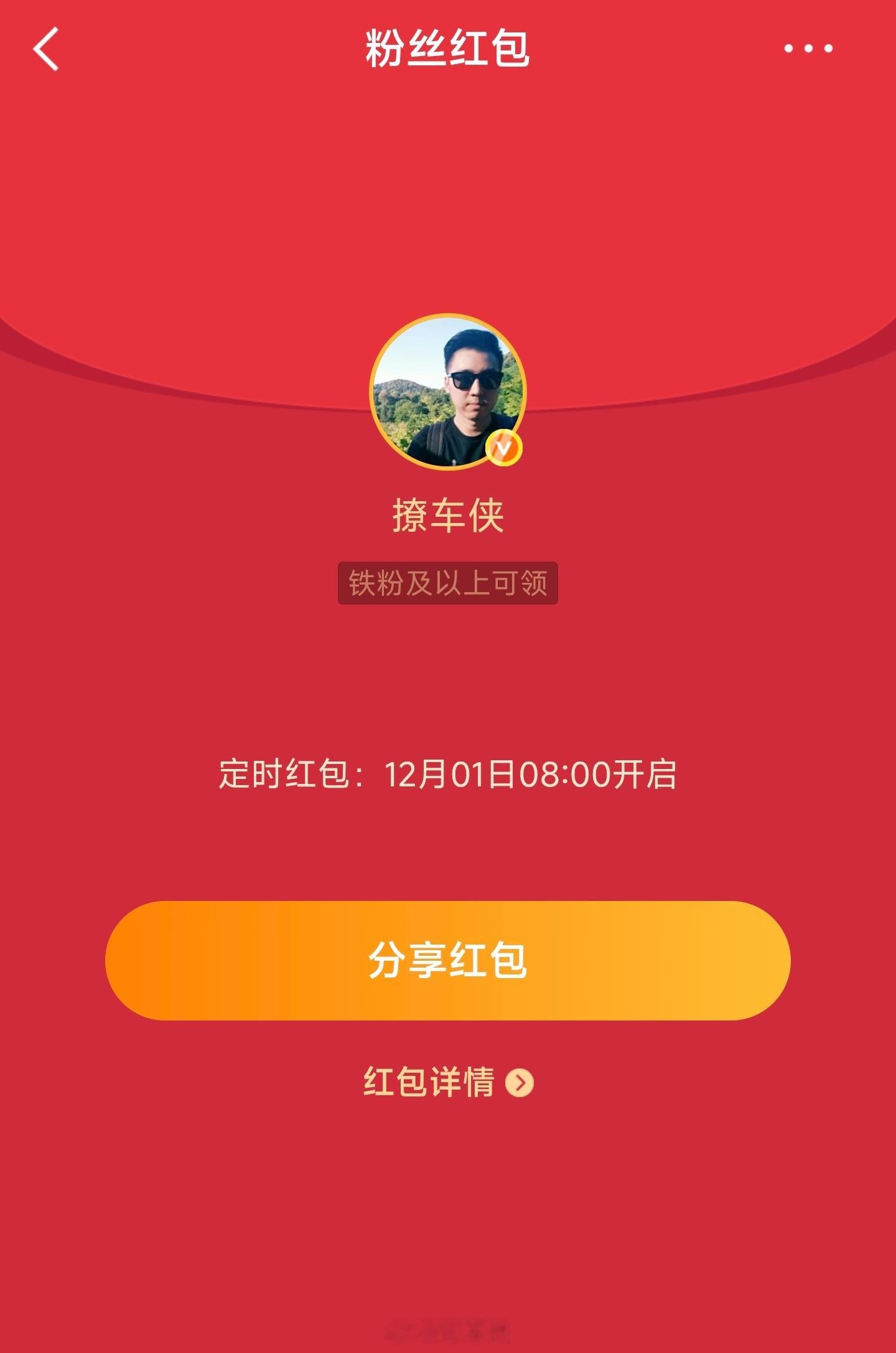 每周一铁粉专属红包安排好了8点准时开,先到先得!撩车侠的红包