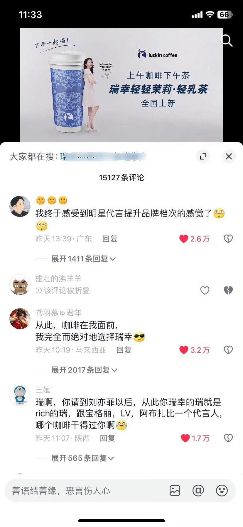 刘亦菲易烊千玺合作能请来刘亦菲代言,我由衷地替瑞幸开心,毕竟我平时也喜欢喝