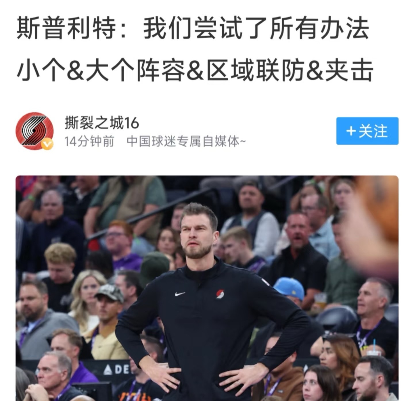 斯普利特离下课不远了!并不是因为他不让杨瀚森上场。而是从球队角度来看,他这样的打法极其伤害球队!而且把球队失利的锅都推给球员,没有很好的反思自己。用队员健康换取的胜利不可取,现在开拓者主力差不多都伤了一遍了,战绩还在下滑。今天他让杨瀚森上场五分钟我还是挺感激他的,但是小杨3中0没把握住机会这也不能怪教练。我看他还没有把杨瀚森下放到发展联盟的意思,小杨至少还得跟两场比赛。毕竟开拓者真没人了…