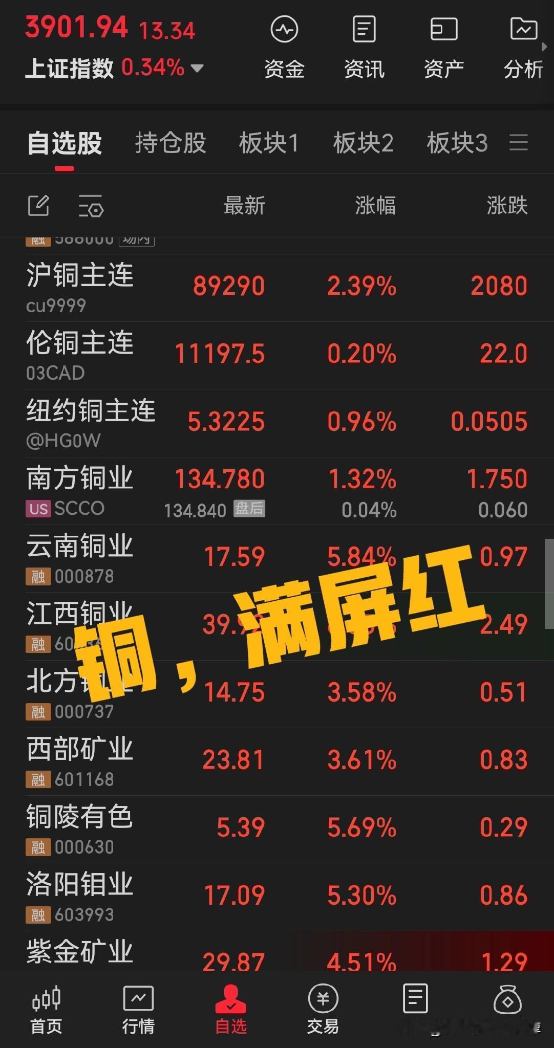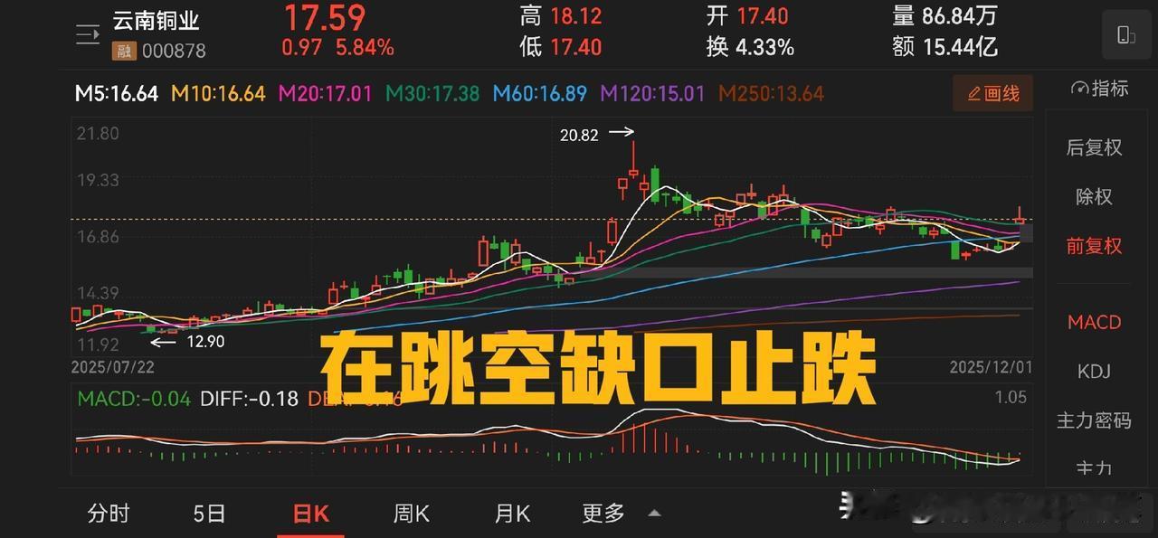 今天云南铜业涨得还不错,和铜有关的有色金属股票全面大涨,但是上午都是收了一个长上影线,这是止跌反弹的正常反应。 云南铜业前几天已经跌到了前期上涨时的跳空缺口位置,在这里得到了一个小的支撑。那么目前大家已经非常清晰的看到,未来的铜必然走向紧缺,基于这种方向性的判断,资金会逐步的流入到和铜有关的股票中来。 高确定性的方向是投资股票非常重要的一个决策基础,资金会无脑进入,最终把资产推向一个新的泡沫,这是未来的一个演化趋势。 短期的涨跌其实意义不大,关键还是未来的方向。耐心持有即可。