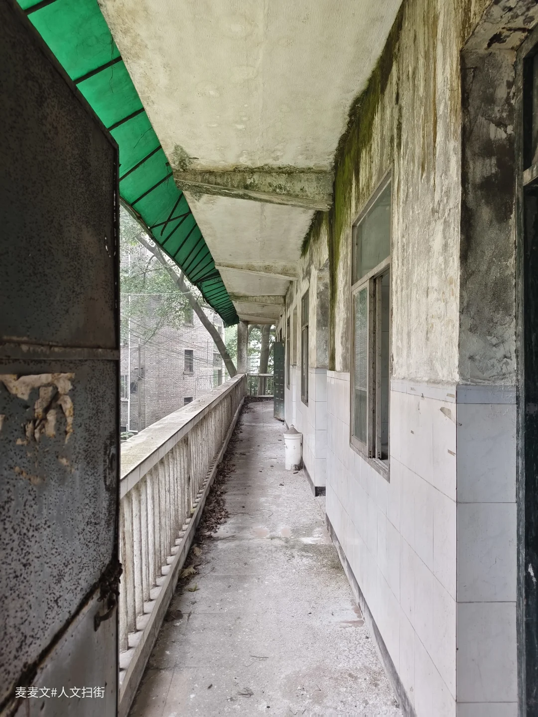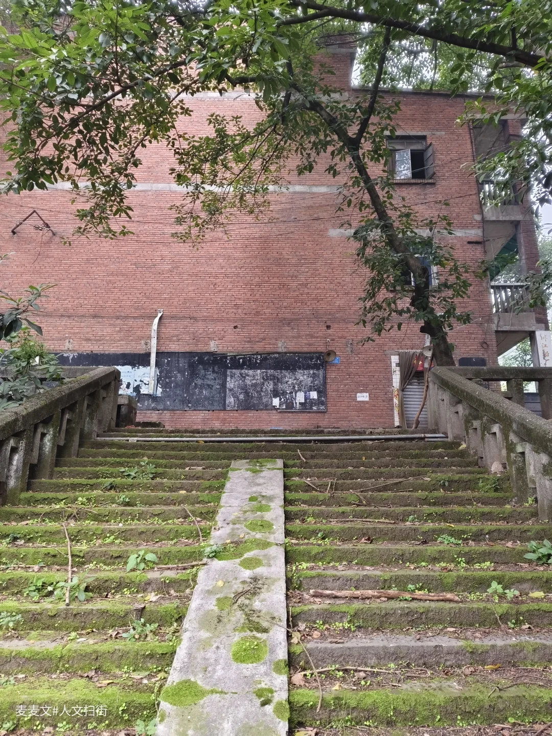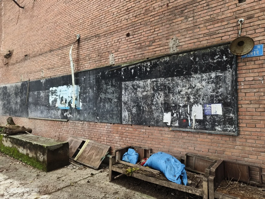这栋红砖楼曾是川江船厂职工医院,当年厂里职工或家属头疼脑热都往这儿跑,二楼走廊总飘着消毒水混着痱子粉的味儿。 如今栏杆锈成灰,墙皮卷着潮斑往下掉,曾经那扇总敞开的诊室门早已封死。树影晃过空荡的走廊,像没人收的病历本。