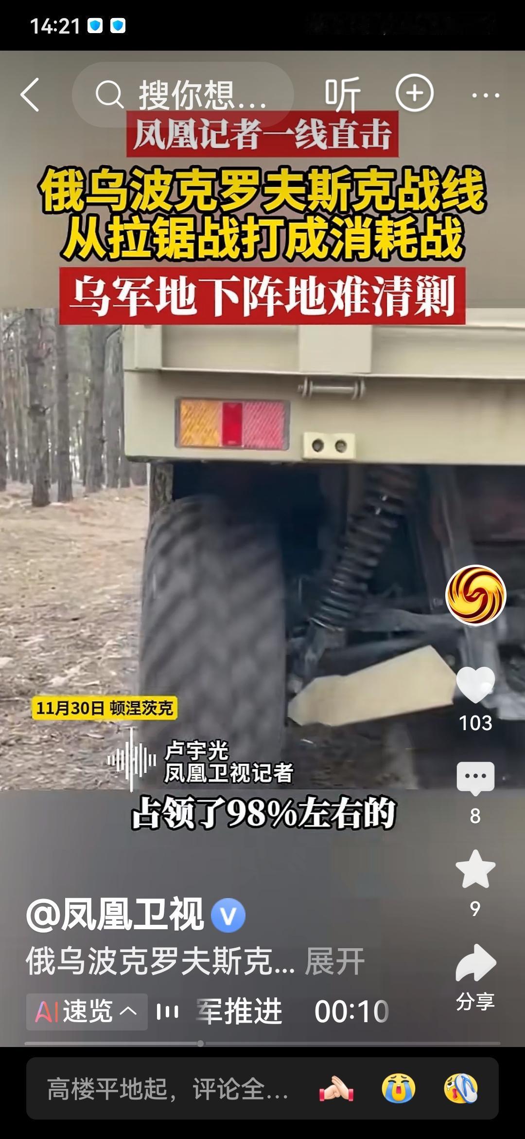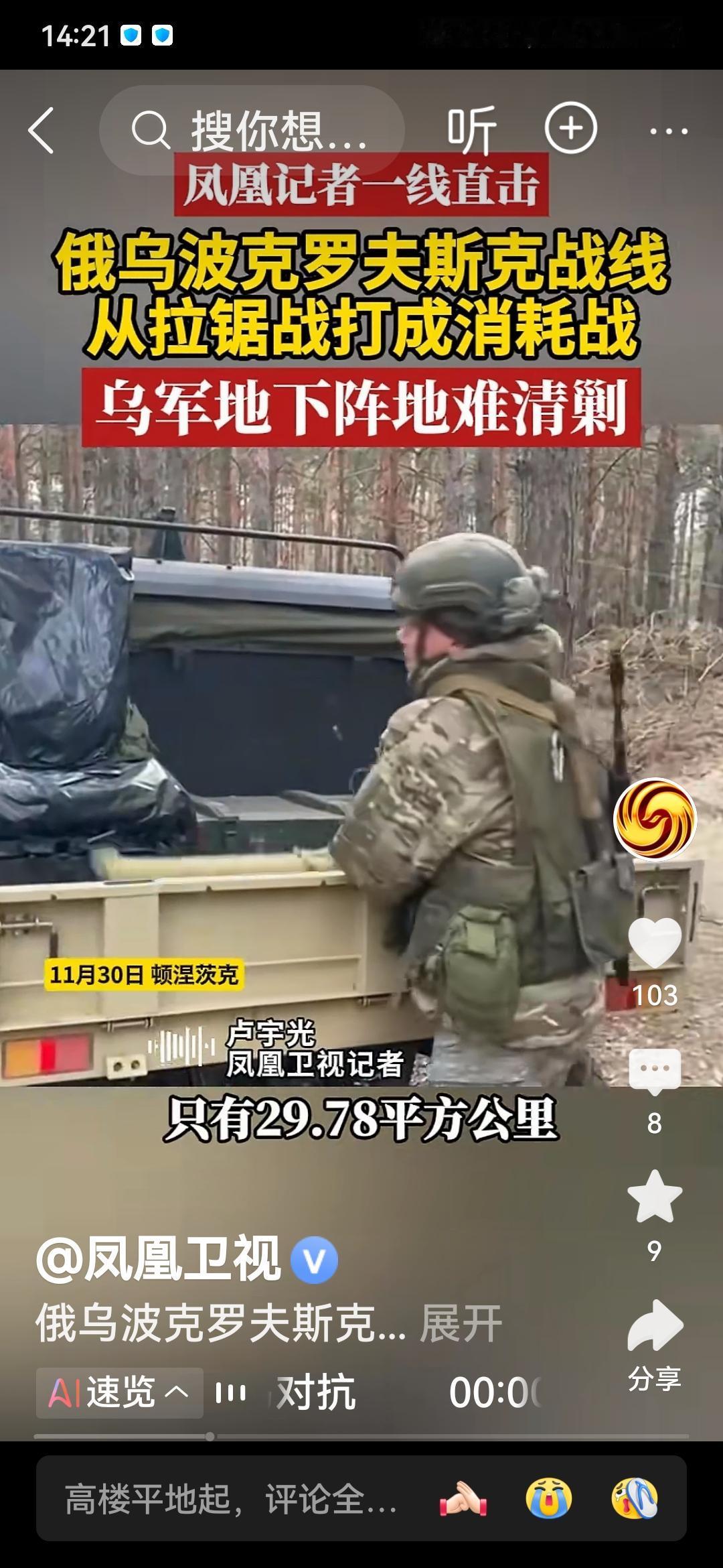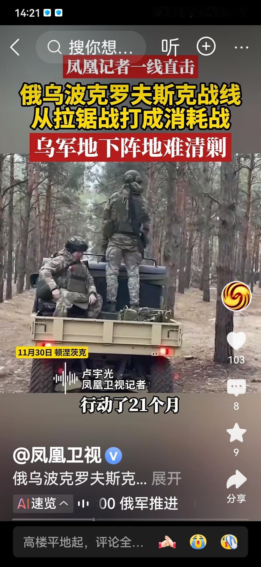 凤凰网卢宇光报道,红军城俄罗斯已经占领98%的面积。但是,现在面临的主要问题是,如何清缴红军城地下的地道内的乌军。这里的地道很坚固,而且与外界相连,要想清缴有点难度。不过这里打了21个月,地下的乌军也就是苟延残喘,战斗就要结束了。