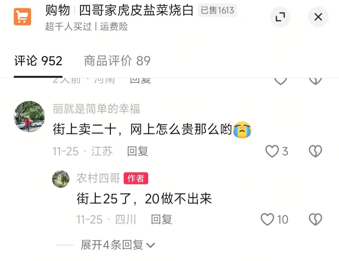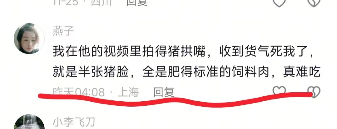我预料到了农村四哥街头卖盐菜扣肉一定会火 也预料到了刚摆出来就被大叔大妈围得水泄不通 万万没想到他还会在网上卖,但发货却不是四川这是什么情况 本来刷到农村四哥街头卖盐菜扣肉的视频,还觉得“这才是乡土美食该有的样子”,五十碗刚摆出来就被大叔大妈围得水泄不通,有人说找了三圈才找到,试吃后直接闭眼冲,卖完那叫一个利索!结果往下翻评论,我直接绷不住了——“宜宾发货”“肥肉占一半”“线上比街头贵一倍”,这反转来得比电视剧还刺激,搞哪样啊? 说实话,农村四哥线下操作是真给力,大叔大妈专门找过来买,还有大妈要试吃盐菜,他也大方给,最后五十碗全卖光,看着就巴适得板!本来以为他线上卖是方便咱们这些没机会去现场的人,结果我闺蜜上个月下单了一份,收到货直接崩溃:“这哪是视频里的扣肉?冷冻得硬邦邦,解冻加热后盐菜都发柴,猪拱嘴更是离谱,半张脸全是肥肉,嚼着像嚼蜡,妥妥的饲料肉!” 她还截了订单给我看,发货地明晃晃写着宜宾,根本不是视频里的农村小院。我晕,这不是挂羊头卖狗肉嘛?本来想替四哥辩解“可能是代发方便”,但后来发现评论区好多人都这么说,有人吐槽“街头20块,线上卖38,溢价也太狠了”,还有人说“差评一大堆,商家还不回应”,瞬间觉得线下的火爆更像剧本,专门用来收割信任的,真没意思。 老实讲,我妈总说“做人要透亮,做事要实在”,这不就是老辈人常说的“种啥因得啥果”嘛?农村四哥视频里反复强调“农村手作”,结果线上产品是宜宾代工厂生产的,宜宾临港食品城全是预制菜加工厂,这事儿傻子都能想明白吧?更膈应的是,他只说线上产品要冷冻加热,压根没提生产地和线下不一样,也没说原料可能有差异,这不是变相误导嘛? 我之前还买过另一个乡土网红的腊肉,人家明明白白说“线下现做,线上合作工厂代加工,原料一致但需冷冻”,虽然贵点,但吃得放心。反观四哥,线下用新鲜样品建立信任,线上就搞“狸猫换太子”,网友能不闹挺吗?有个网友评论说得好:“不是反对网红变现,是反对把消费者当冤大头!” 确实,咱们买的是“乡土味道”,不是“工业预制菜+人设溢价”啊! 总之,经过这事儿我算看明白了,网红食品的水太深了!我觉得,首先买之前一定要看发货地,如果宣传是“农家自制”却显示食品城集中地发货,直接pass;其次别光看视频里的样品,多翻差评,尤其是关于品质、价格的反馈,比商家吹得天花乱坠管用;最后如果价格差太多,果断放弃,街头20块的东西线上卖翻倍,大概率是在收割人设税,你说是吧!