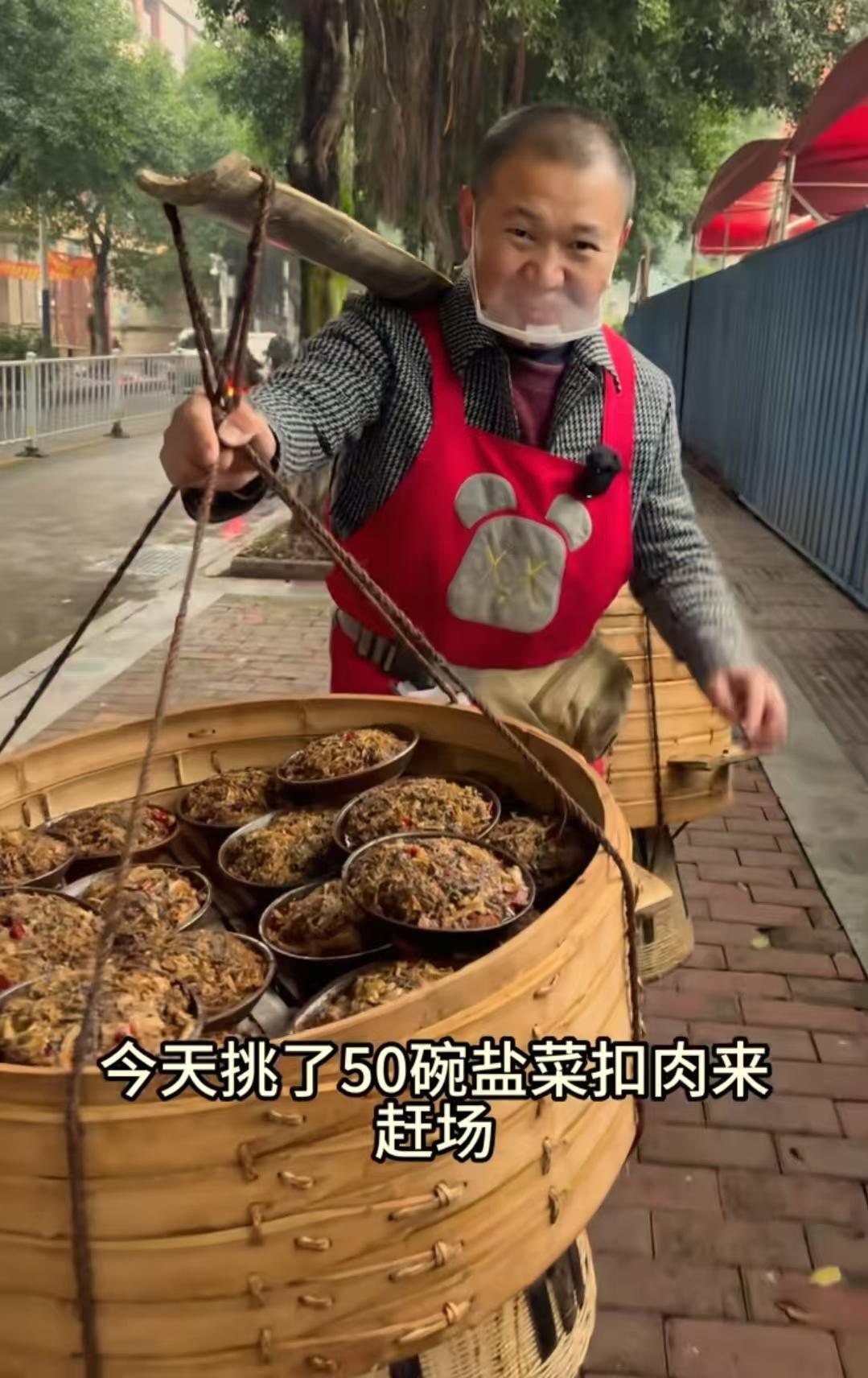 我预料到了农村四哥街头卖盐菜扣肉一定会火 也预料到了刚摆出来就被大叔大妈围得水泄