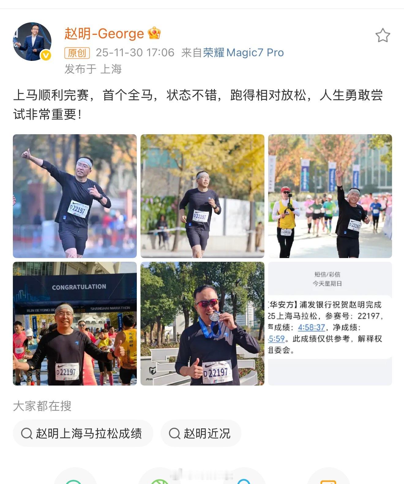 明哥最近在干啥?没入职新公司,跑马拉松去了,还在用着荣耀Magic7 Pro,推荐换最新的荣耀Magic8系列试试