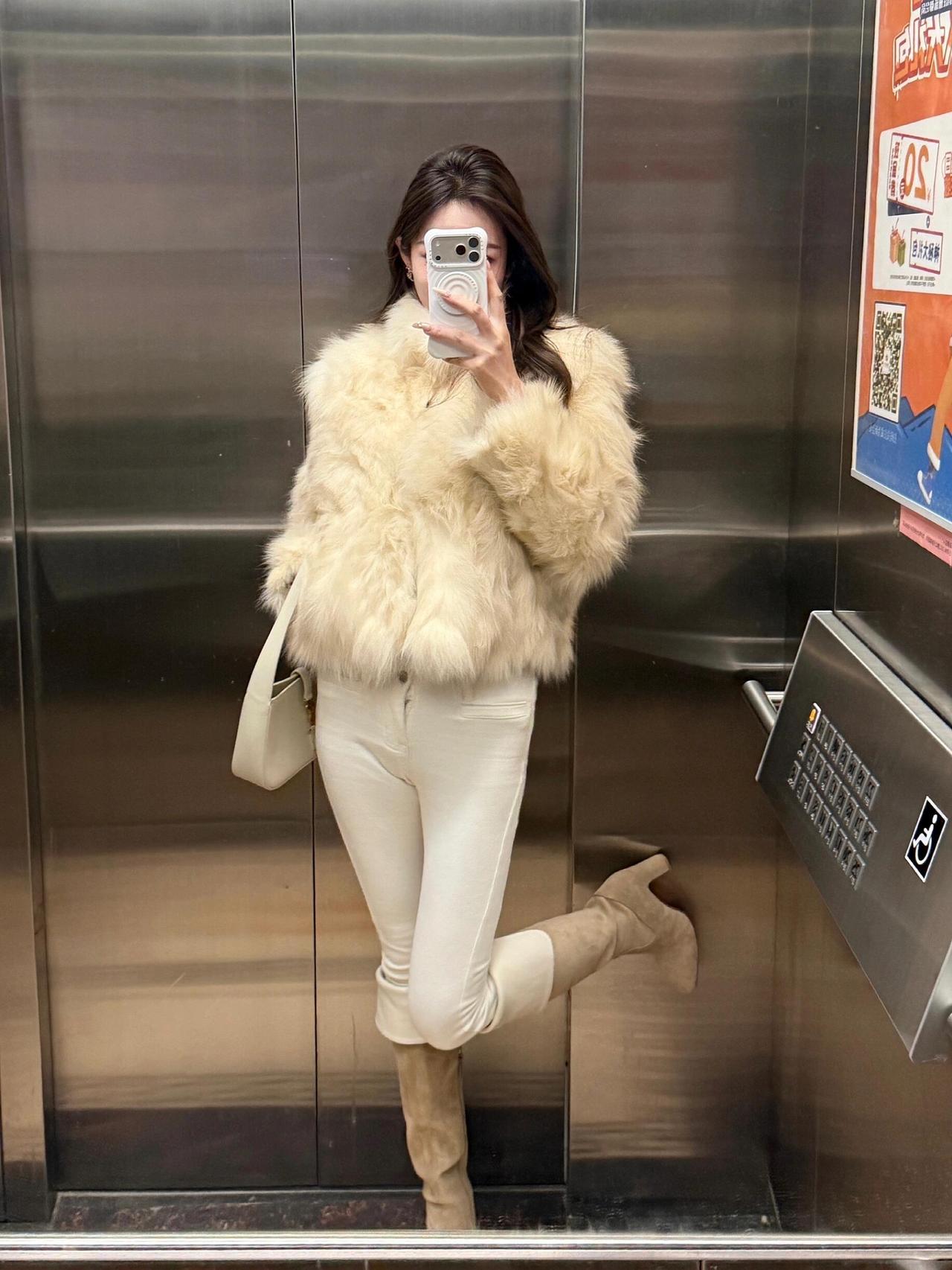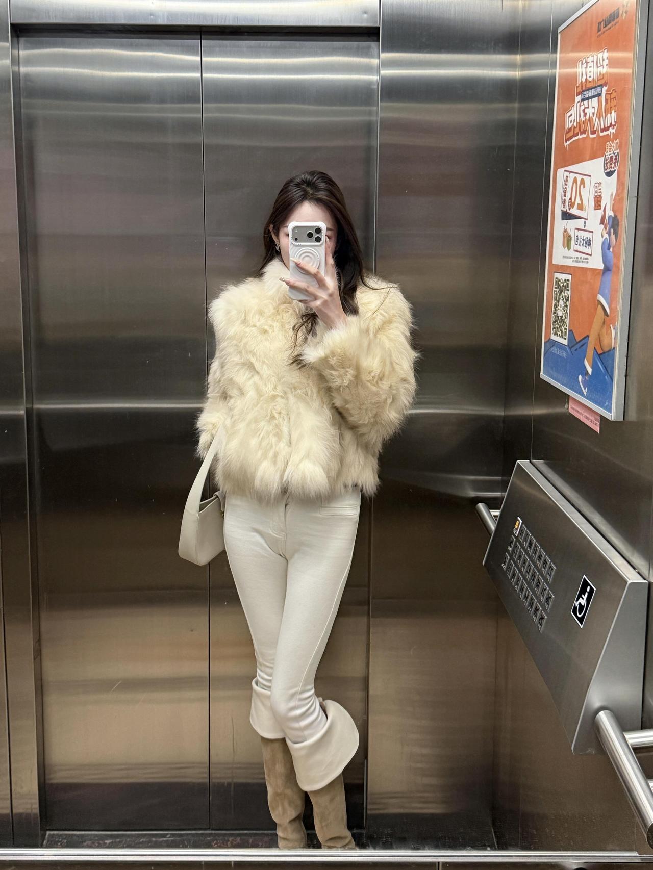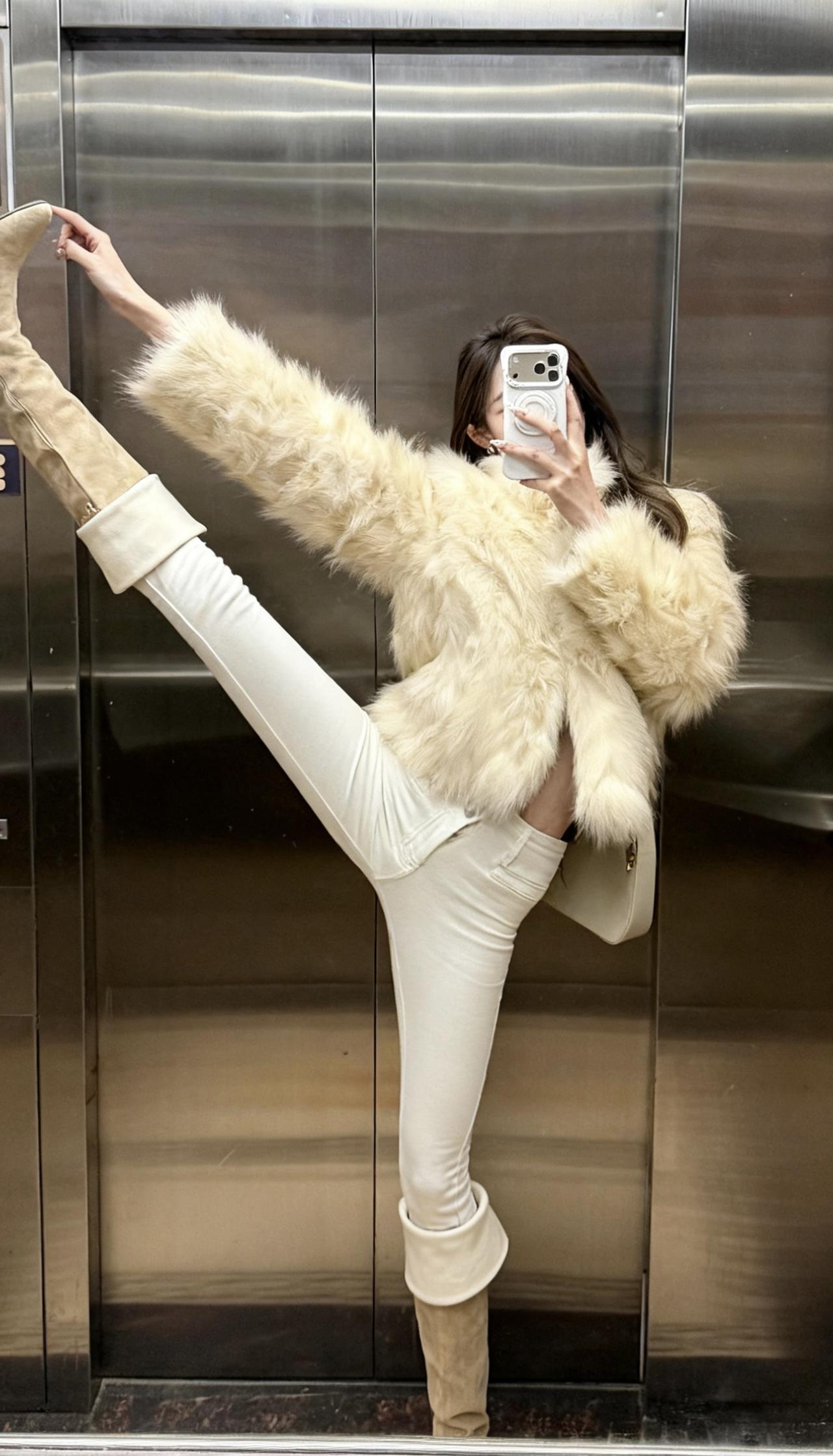 今日穿搭推荐:暖贵辣妹,风整体是低饱和色系的同色系搭配。 上衣:短款米白色毛绒(仿皮草)外套,蓬松质感自带贵气,短款版型能拉高腰线; 下装:奶白色牛仔裤,紧身款刚好平衡了外套的蓬松感,显腿细且能呼应整体温柔色调; 鞋包:浅卡其长靴+同色系小方包,统一的色系让造型更和谐,长靴也强化了“辣妹感”。 适合的场合:周末逛街、探店、约会、轻社交、节日小聚会。