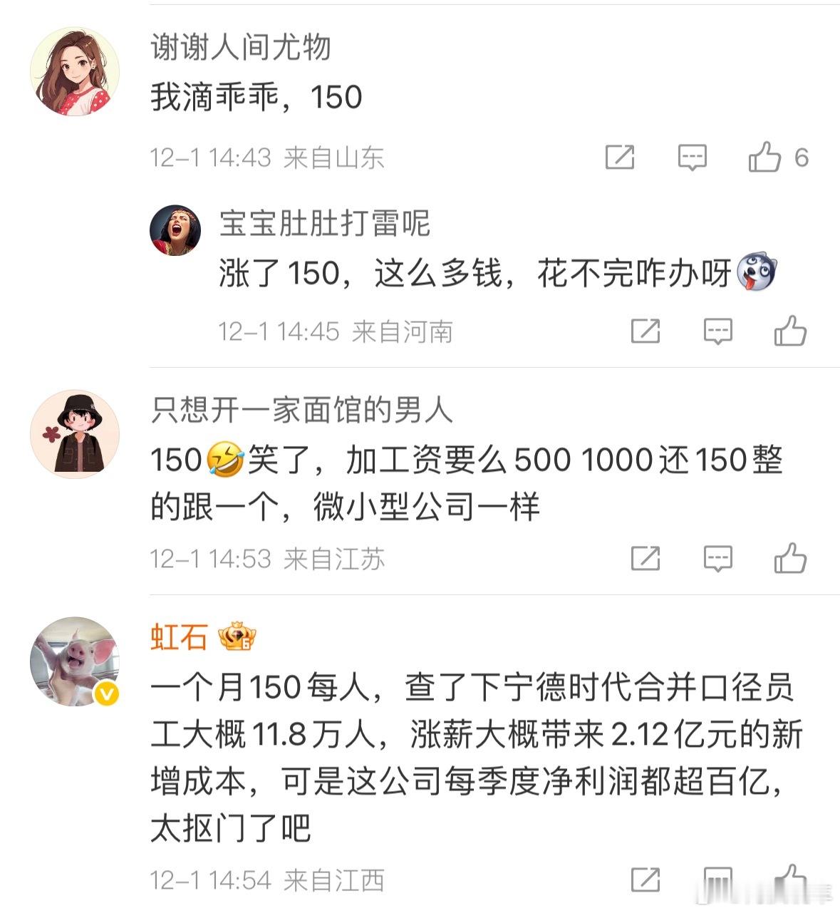 宁德时代发布涨薪通知大抵是大家生活好了,连每个月涨薪150都看不上了。其实就看看现在这个就业环境,能有个稳定工作已经不错了,还给你涨薪的企业也没几个吧?